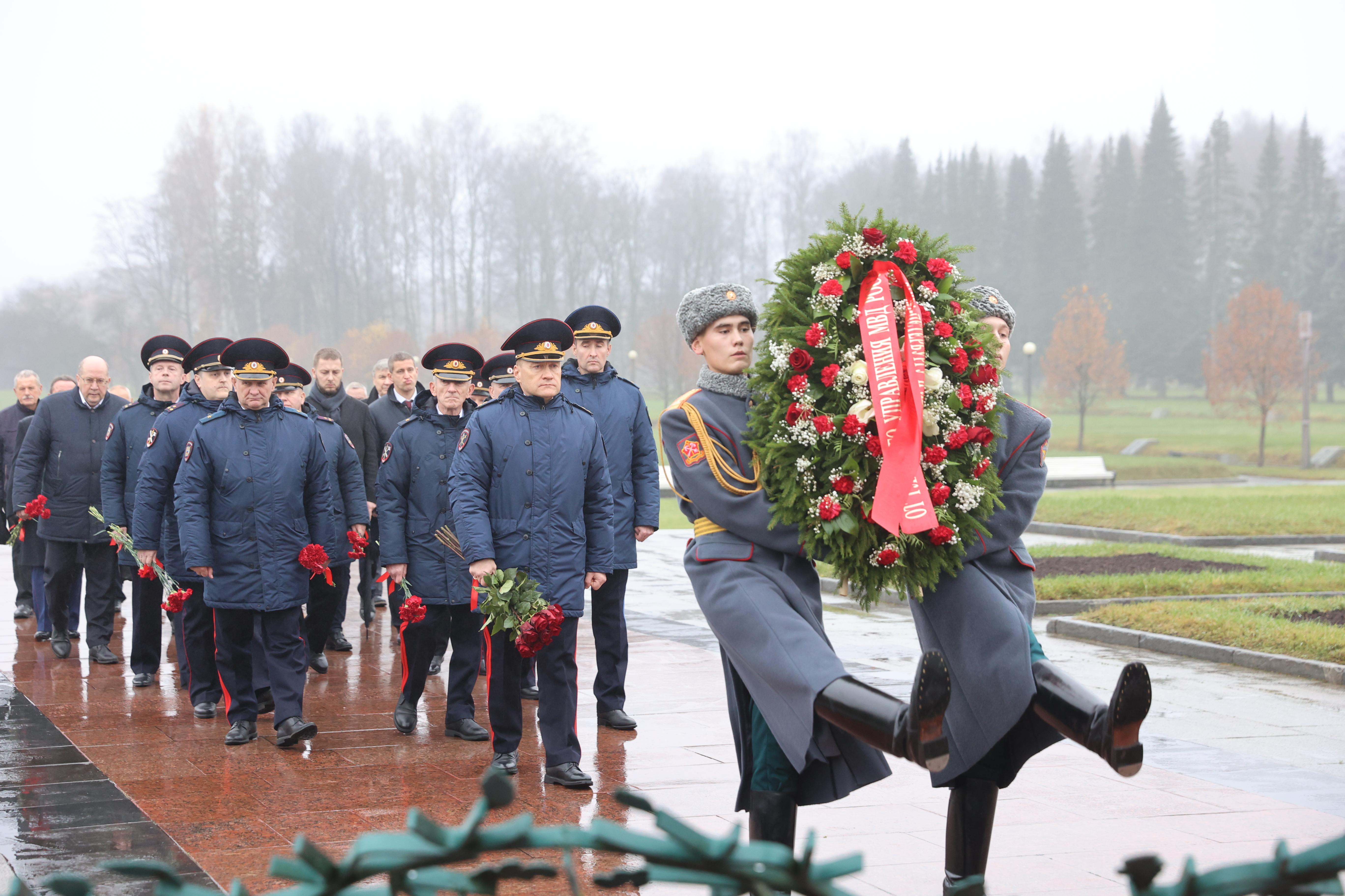 Торжественно-траурная церемония возложения цветов и венков прошла 7 ноября на Пискарёвском мемориальном кладбище Санкт-Петербурга. Мероприятие, приуроченное к кануну Дня памяти погибших при выполнении служебных обязанностей сотрудников органов внутренних дел, собрало руководство и личный состав ГУ МВД России по Санкт-Петербургу и Ленинградской области.