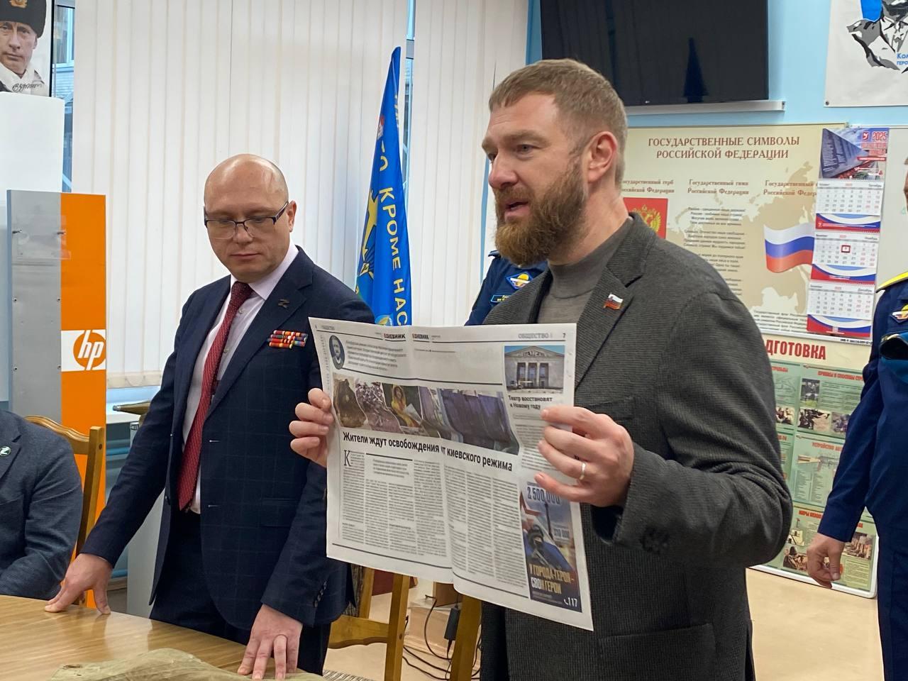 «До этого он приезжал на празднование дня рождения Ленинградского полка. С ленинградским полком у Харьковской области глубокая связь, потому что полк сражается именно там и сейчас освобождает Купянск, фотографии которого представлены на выставке, потому что в 22-м году, собственно, там это был временный административный центр Харьковской области», – пояснил депутат.