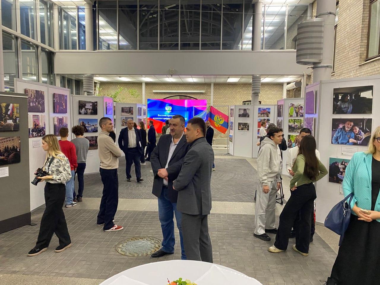 Выставка «Харьковская Весна» открылась накануне в Музее политической истории России. Ее организовала Военно-гражданская администрация (ВГА) Харьковской области. Глава ВГА Виталий Ганчев с командой лично приехал и выступил с речью на открытии.