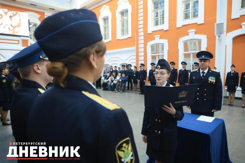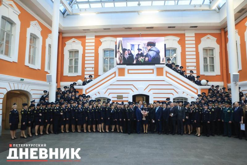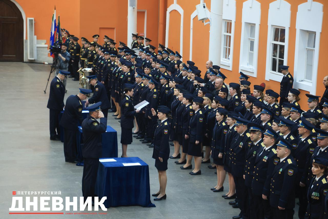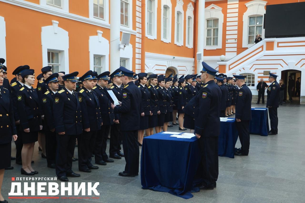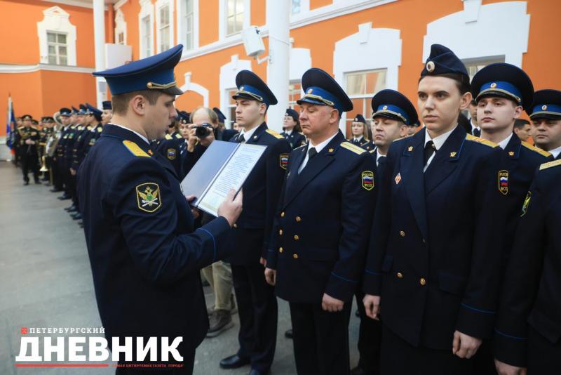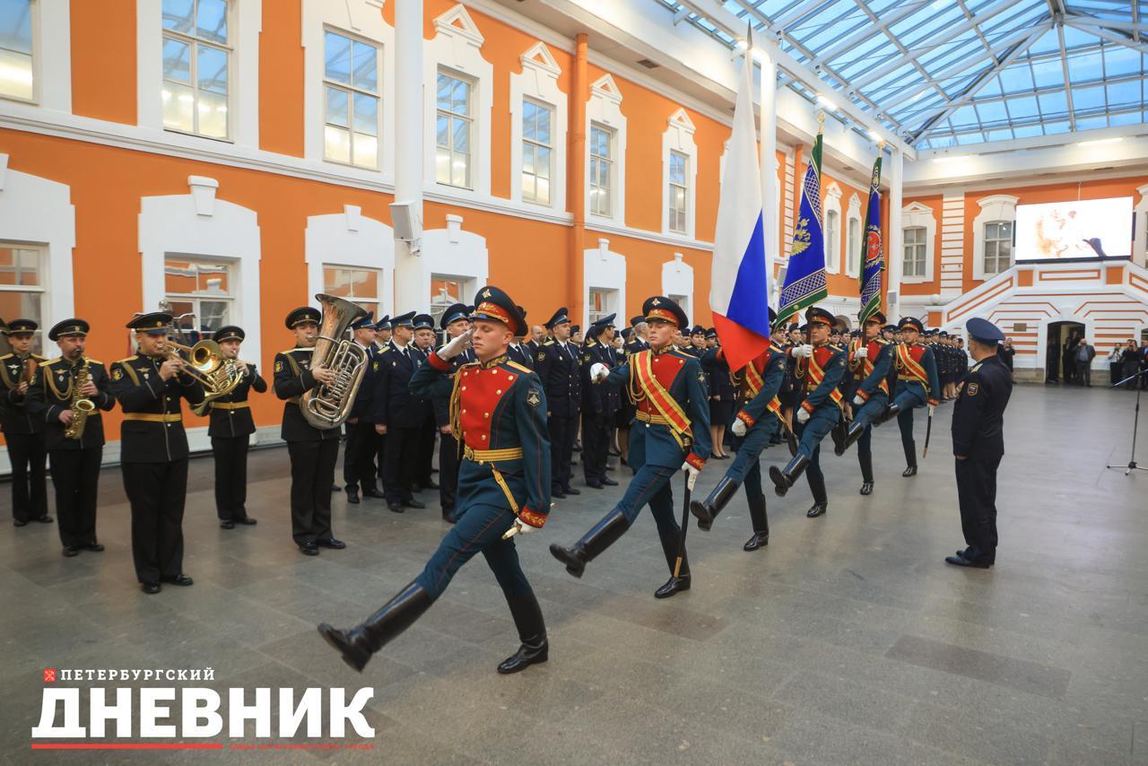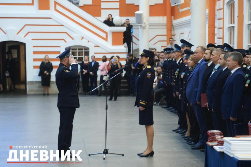 Затем в атриуме Петропавловской крепости прошла торжественная церемония приведения к присяге вновь принятых на службу сотрудников и награждение отличившихся сотрудников.