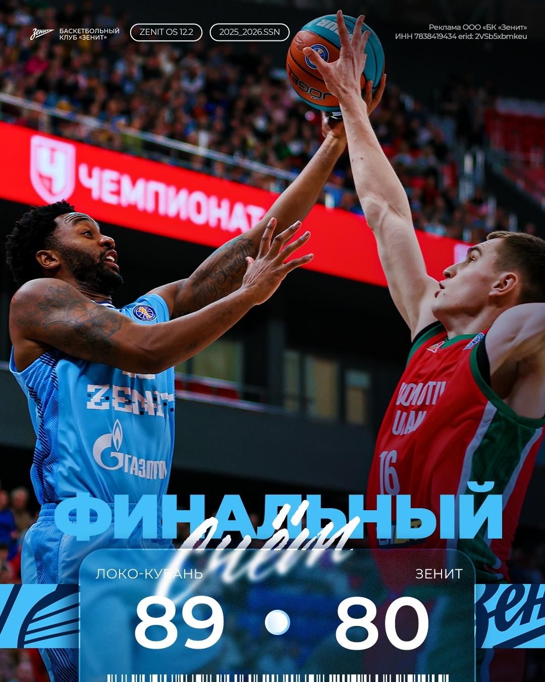 Петербургский БК «Зенит» сегодня в матче Единой лиги ВТБ уступил клубу «Локомотив-Кубань».