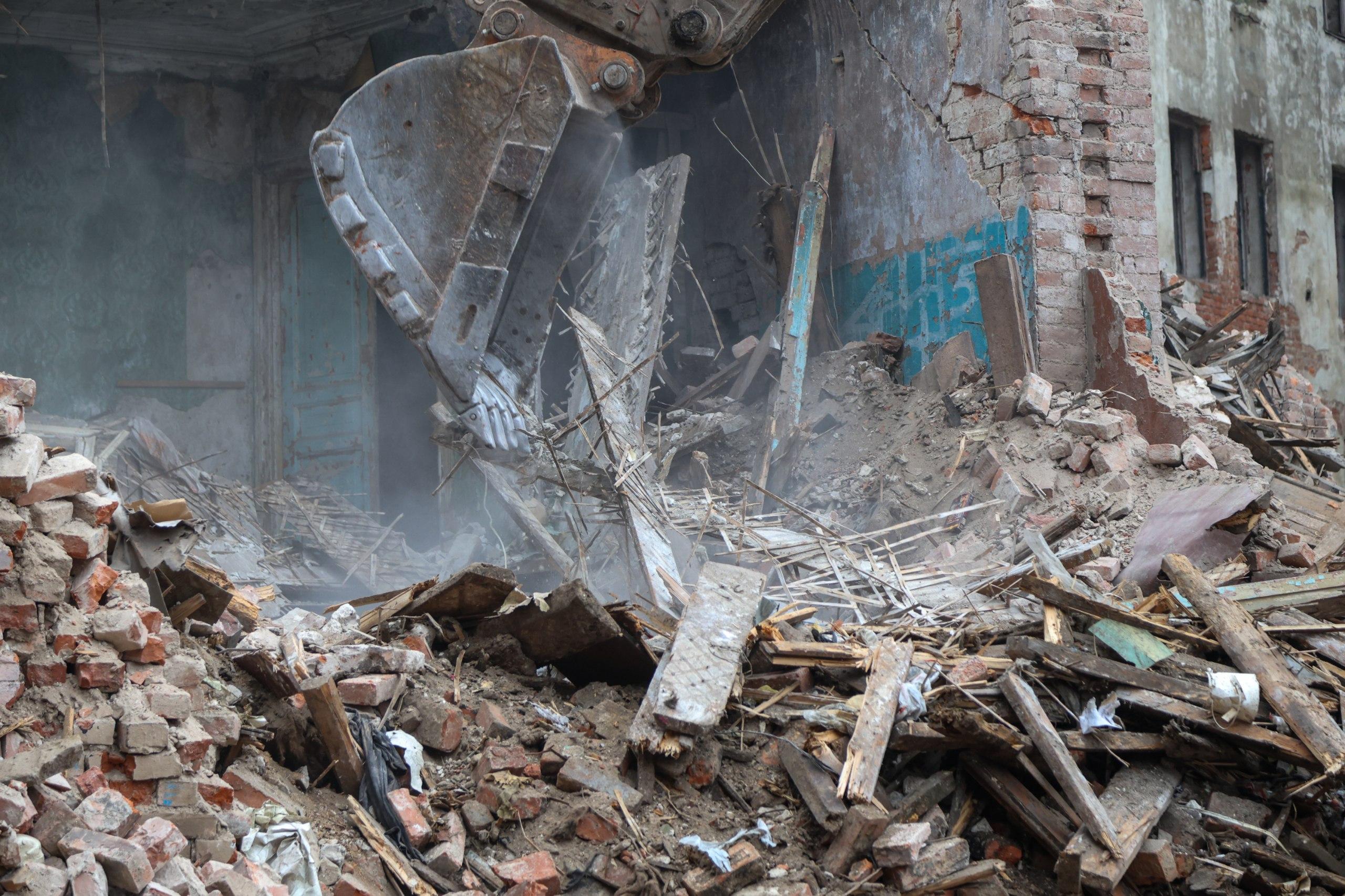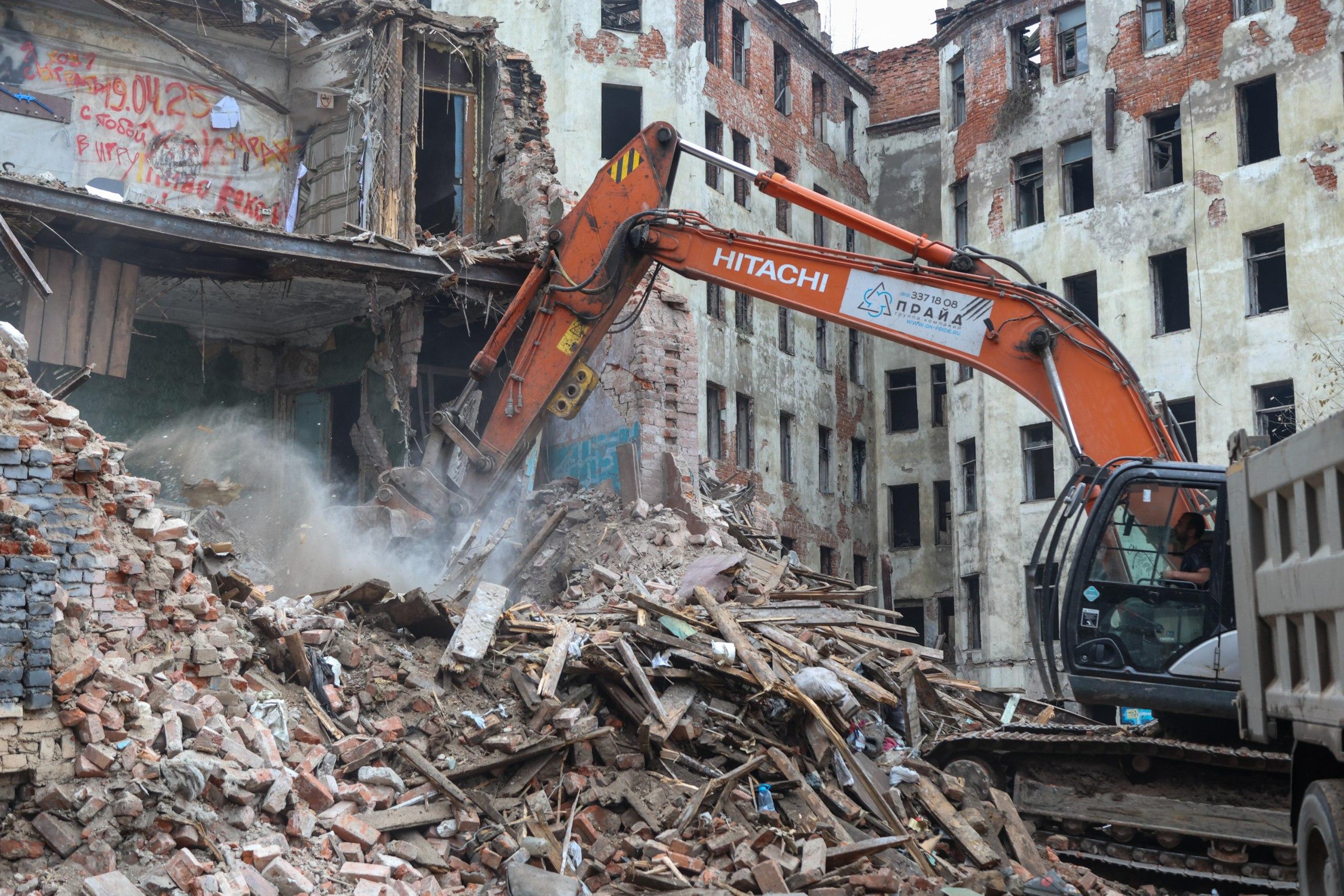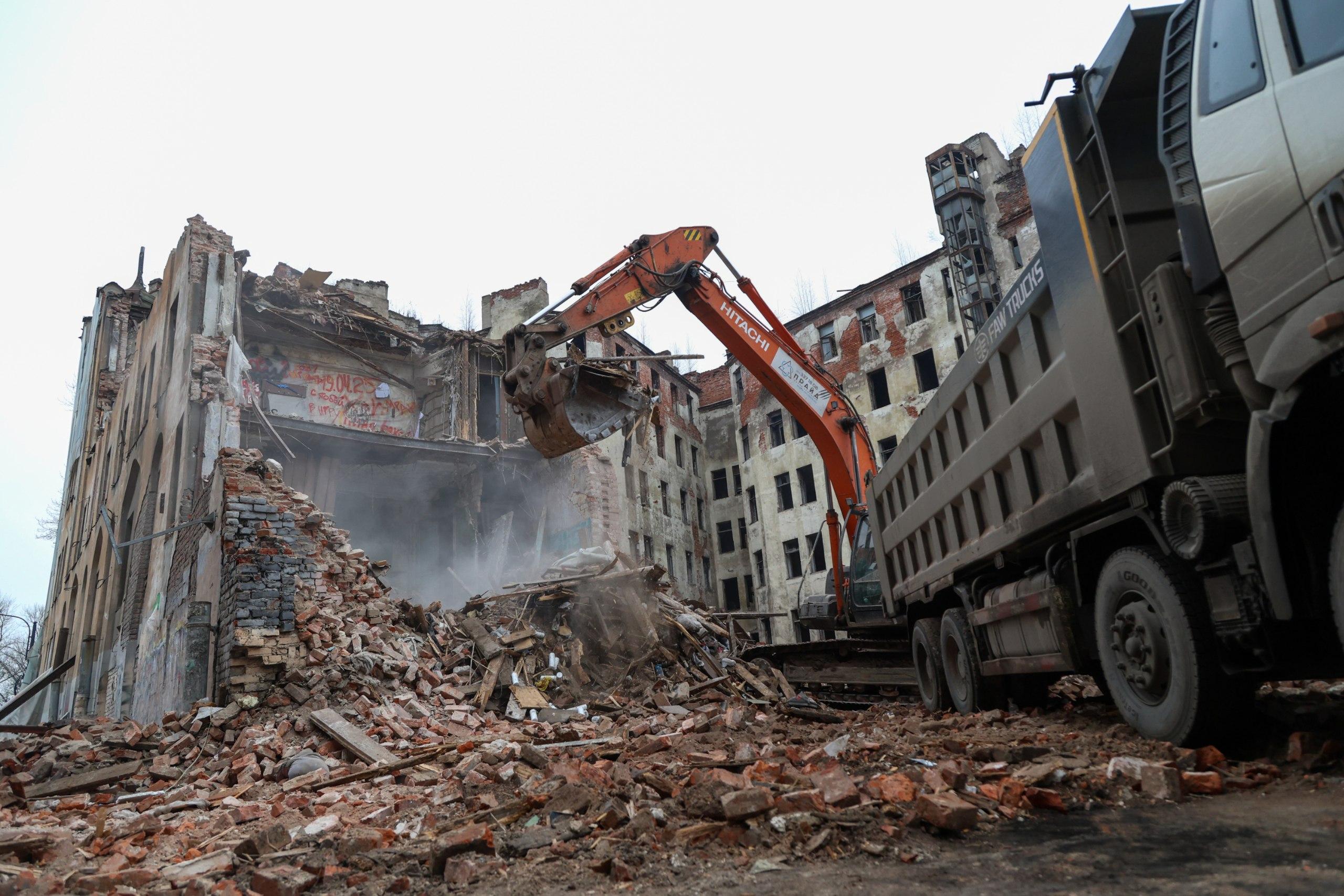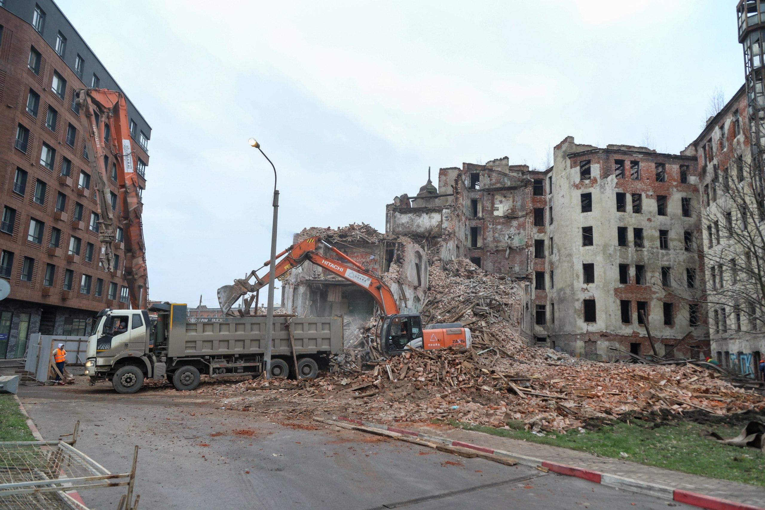 Фото: демонтаж здания на улице Розенштейна в Петербурге