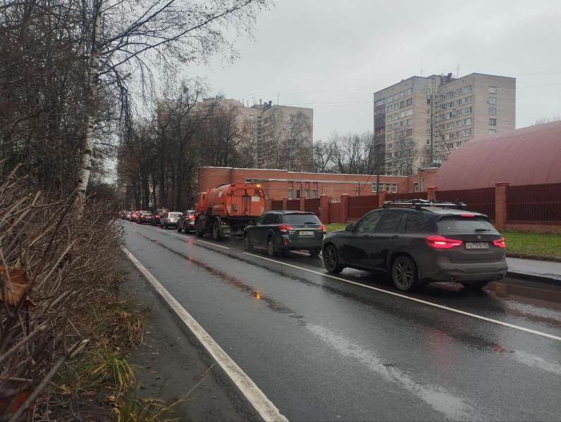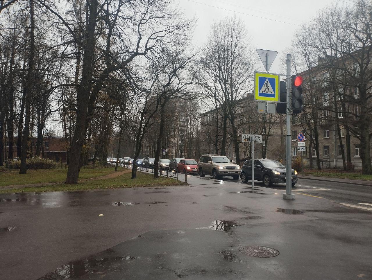 Участок проспекта Энгельса от перекрестка с проспектом Пархоменко огорожен специальными сооружениями и мешками с песком, автомобилисты пользуются проспектом Пархоменко, из-за чего затруднено движение по улице Орбели.