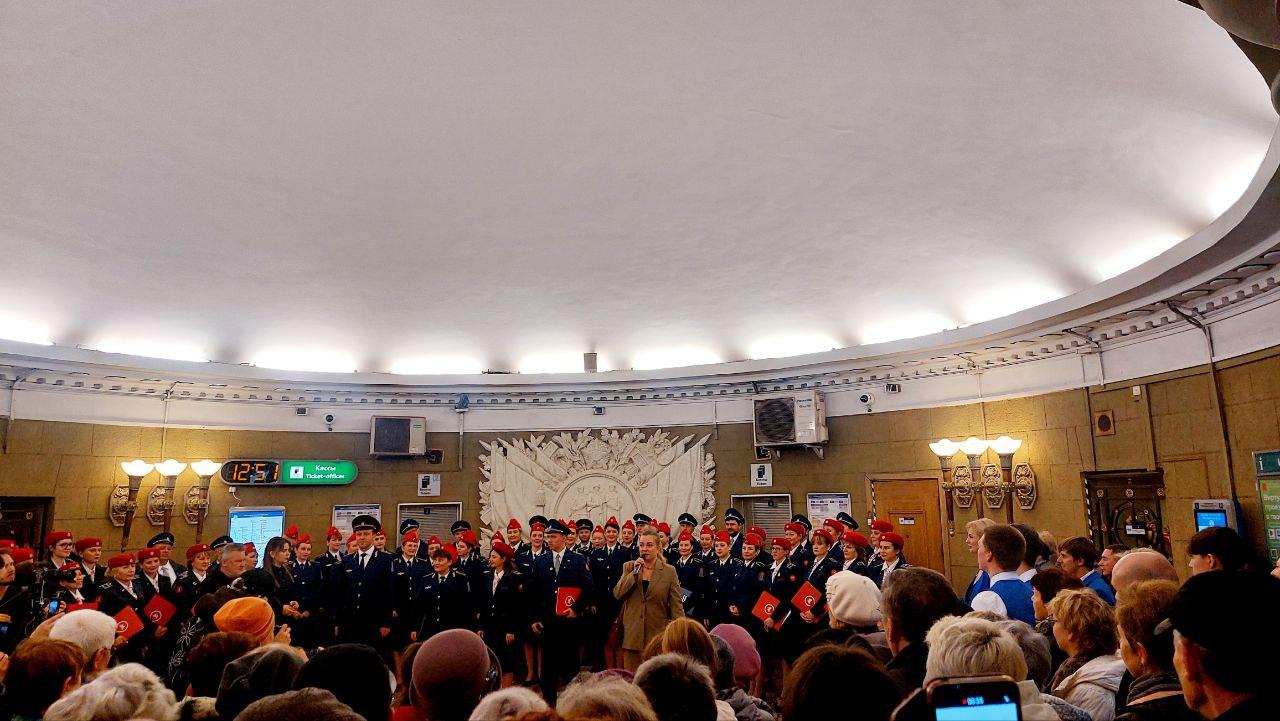 В Петербурге на станции метро «Автово» впервые выступил объединённый хор Петербургского и Московского метрополитенов. Концерт посвящен 70-летию петербургского метро.