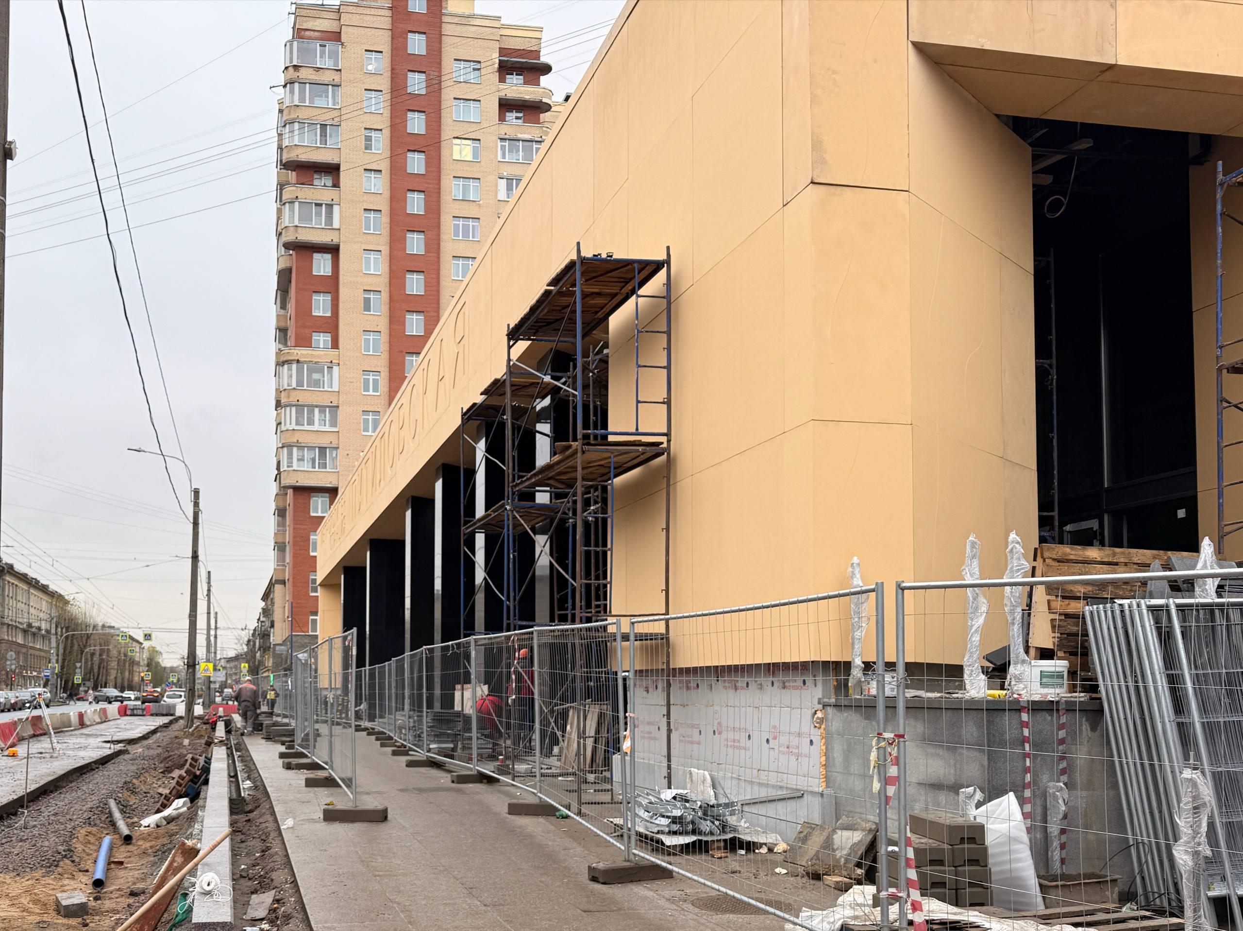 Ключевой этап был пройден на минувших выходных: на углу вестибюля, выходящего к проспекту Стачек, были установлены последние большие фибробетонные панели характерного цвета «охра».