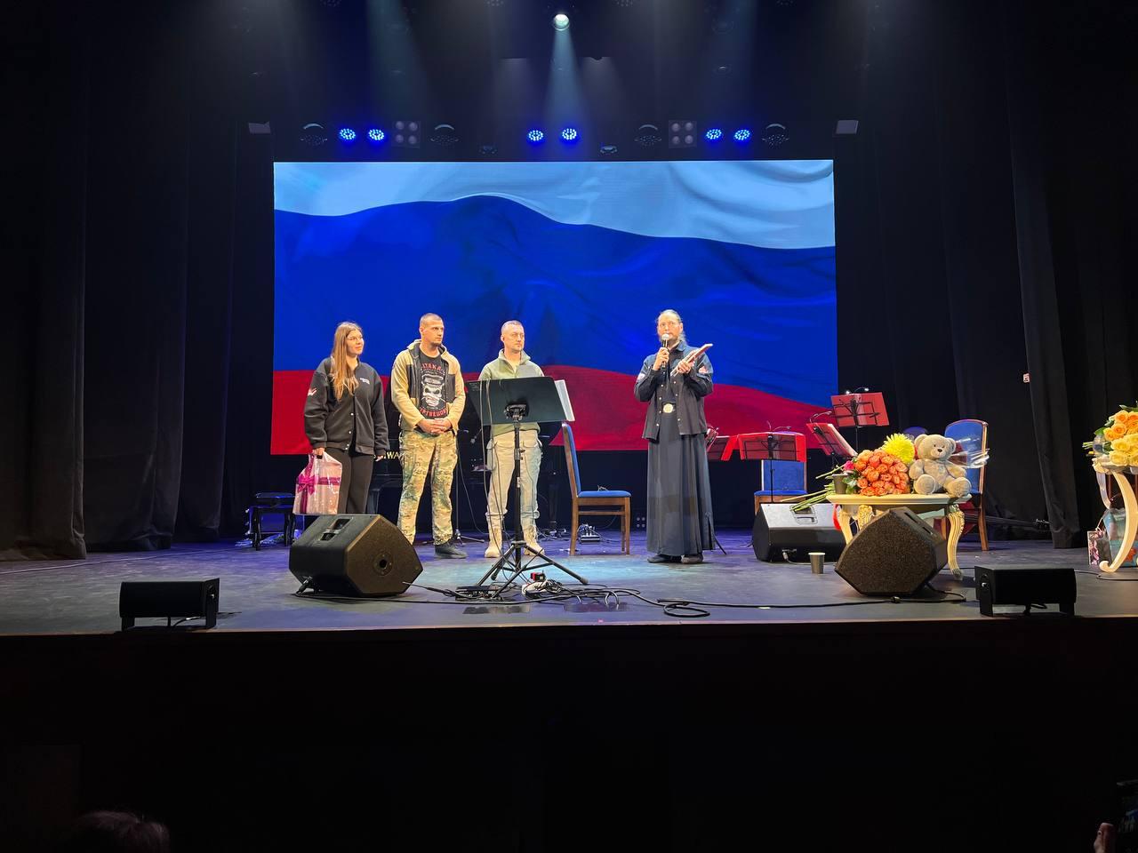 На своем юбилейном концерте в Петербурге, посвященном 40-летию, иеромонах Фотий, амбассадор «Народного фронта», передал бойцам Белгусу и Зазе икону для воинов, сражающихся на северском направлении, – Калужскую икону Божией Матери.