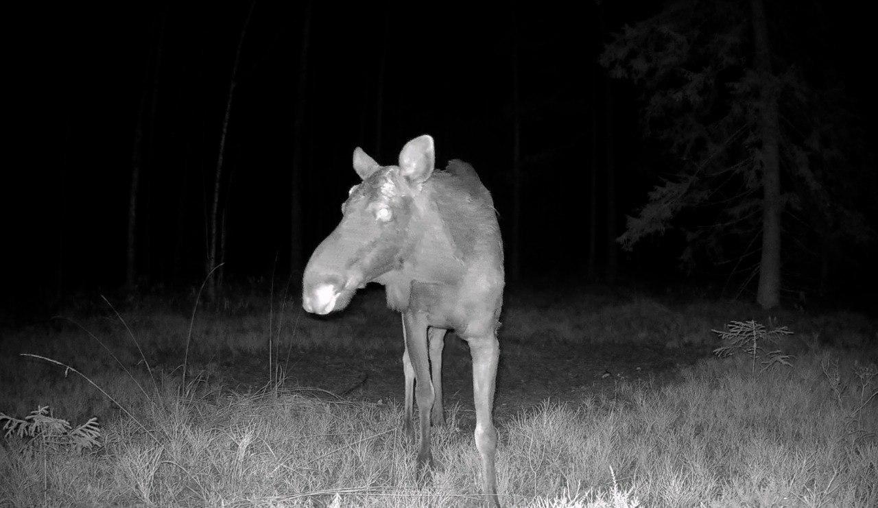 У лосей в Ленинградской области закончился гон. В связи с этим они стали массово избавляться от орудий турниров – рогов. Теперь им этот инструмент без надобности. Рога были нужны женихам исключительно для выяснения отношений с соперниками и демонстрации себя перед невестами. Один из бывших рогоносцев попался в видеоловушку.