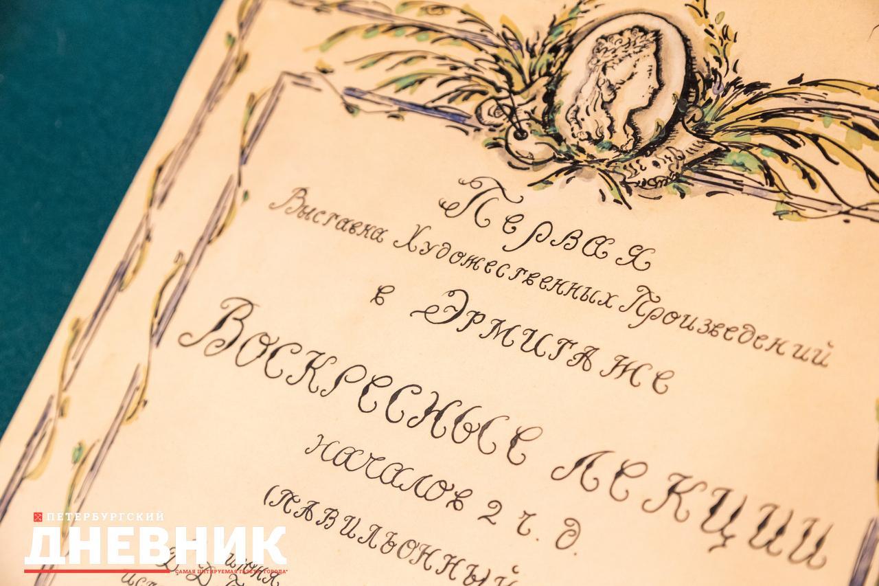 В дополнение к цифровым новшествам Эрмитаж представил архивные и книжные экспозиции, подчёркивающие преемственность традиций. Среди них исторические билеты, приглашения и афиши; приказы и распоряжения разных лет; «Правила для посетителей Императорского Эрмитажа» (1863 год); примеры шрифтов и каллиграфии, формирующих «эрмитажный почерк».