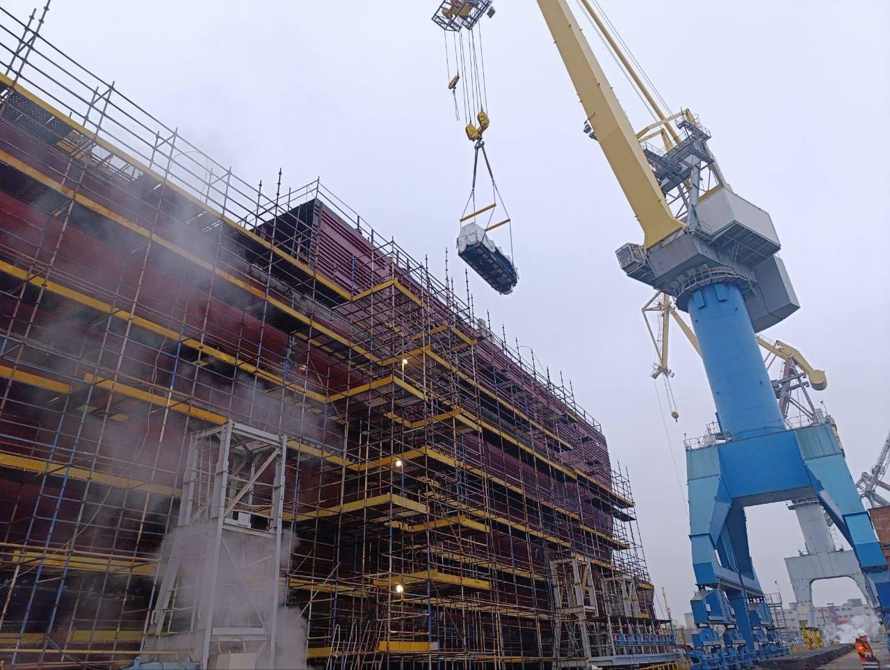 На строящемся универсальном атомном ледоколе «Ленинград» выполнена ключевая операция по установке резервного дизель-генератора. Специалисты Балтийского завода ОСК с помощью портального крана разместили агрегат весом 38,5 тонны на левом борту судна.