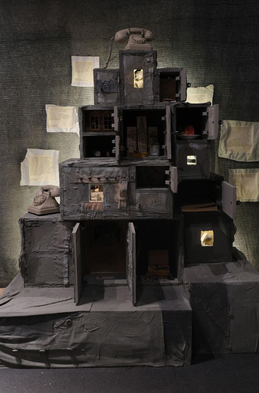 «Мы провели open-call, и главные художницы выставки и двигательные силы её концепции – Маша Небесная и Женя Исаева – организовали творческую лабораторию. Здесь работали волонтёры, стремившиеся создать инсталляции, а также была собрана значительная коллекция воспоминаний о Хармсе и его друзьях, отражающих особенности эпохи и обстоятельства той поры. Каждый из участников лаборатории выбирал то воспоминание или цитату, которые ему хотелось визуализировать», – рассказала Елена Джумук.