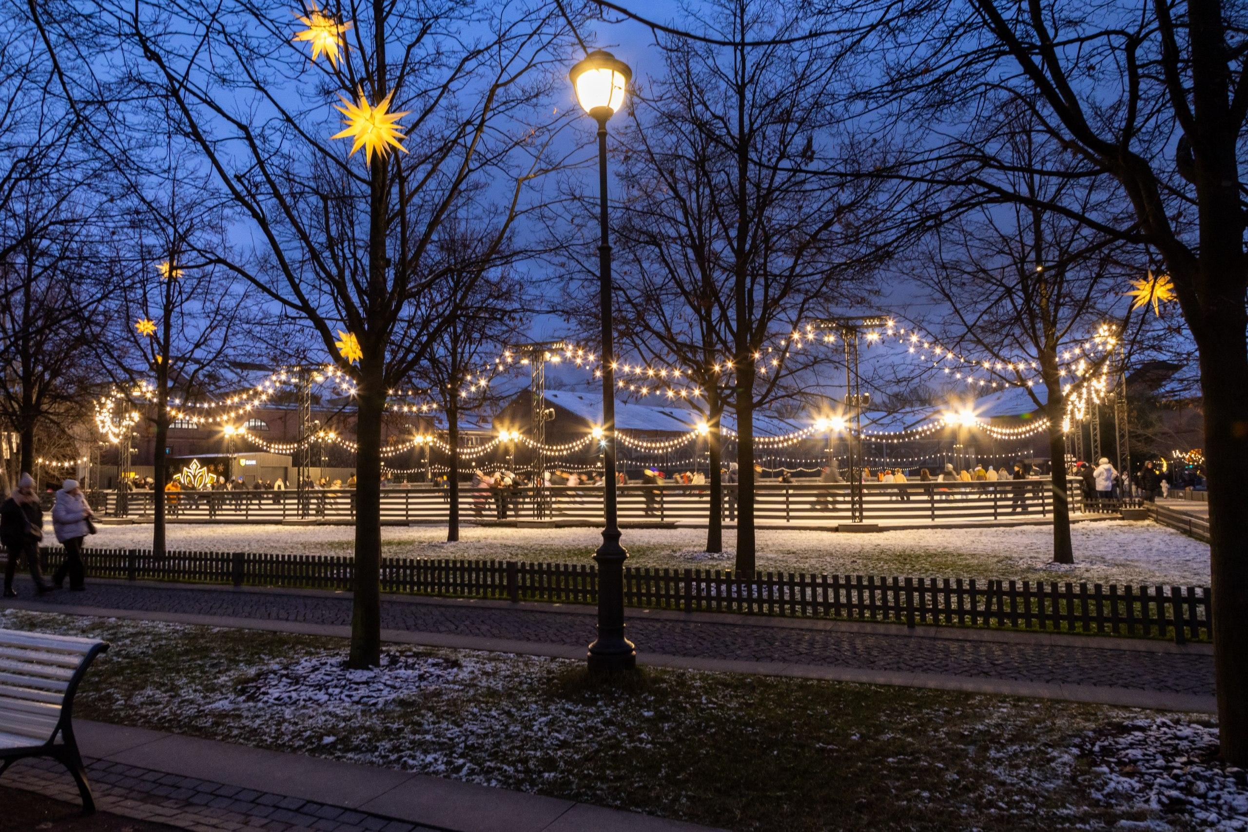 Ледовое поле площадью 2000 м² развернулось на месте большого газона. Современная система охлаждения позволяет ему функционировать даже в плюсовую температуру, гарантируя стабильный лёд на протяжении всего сезона.