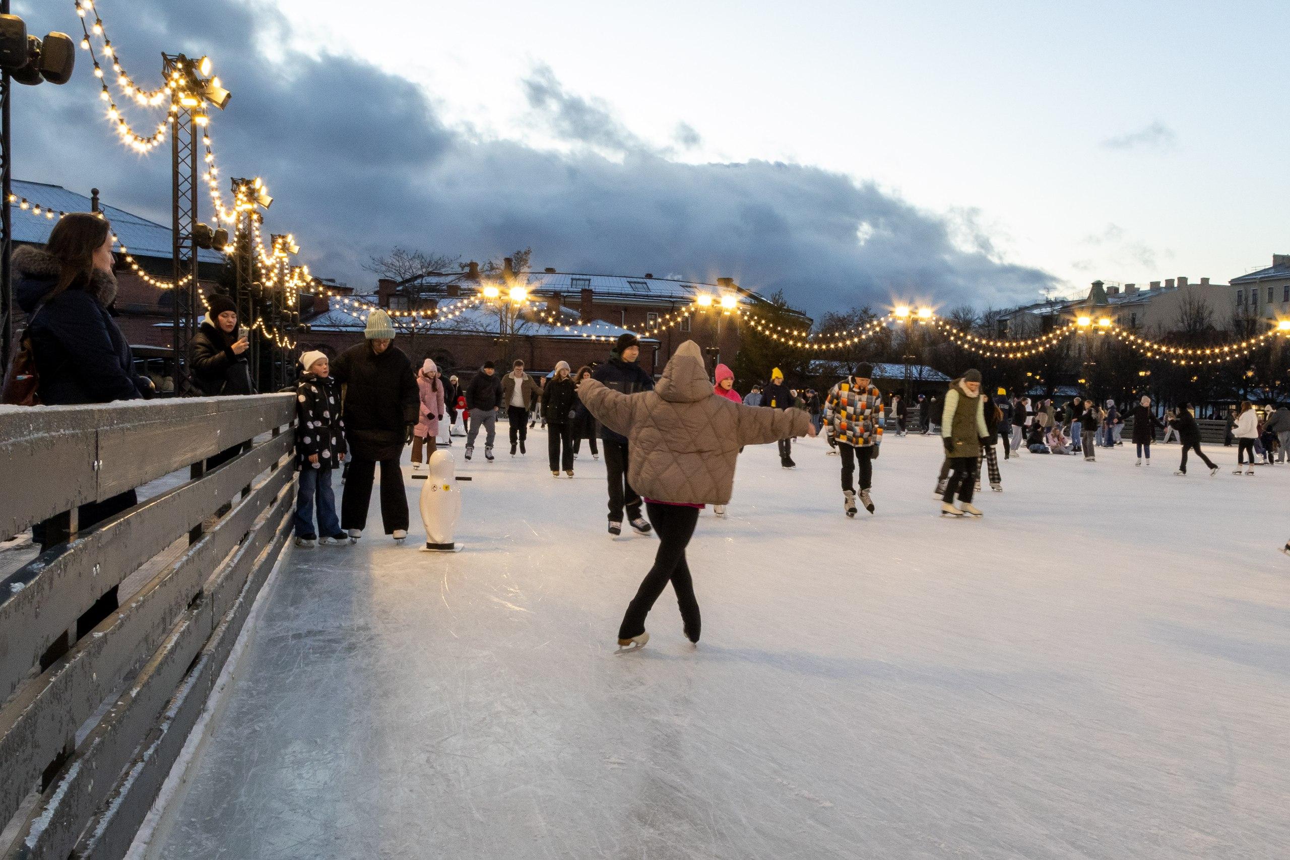 На рукотворном острове Петербурга открылось масштабных размеров ледовое пространство. Каток в «Новой Голландии» по счастливой случайности заработал прямо после первого снега, о старте сообщили в администрация культурного кластера.