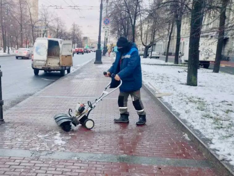 Уборка Северной столицы России после снегопада весь день идет полным ходом. Особое внимание уделяют дорогам и тротуарам.