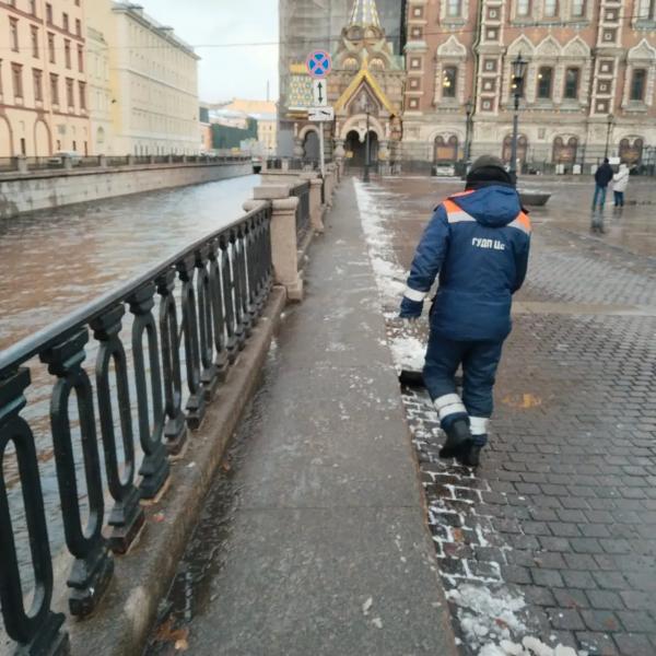 По данным администрации Петербурга, в среду на улицы города вышли 631 единица спецтехники и 608 сотрудников ручной уборки. А во дворах сегодня трудятся 558 дворников.