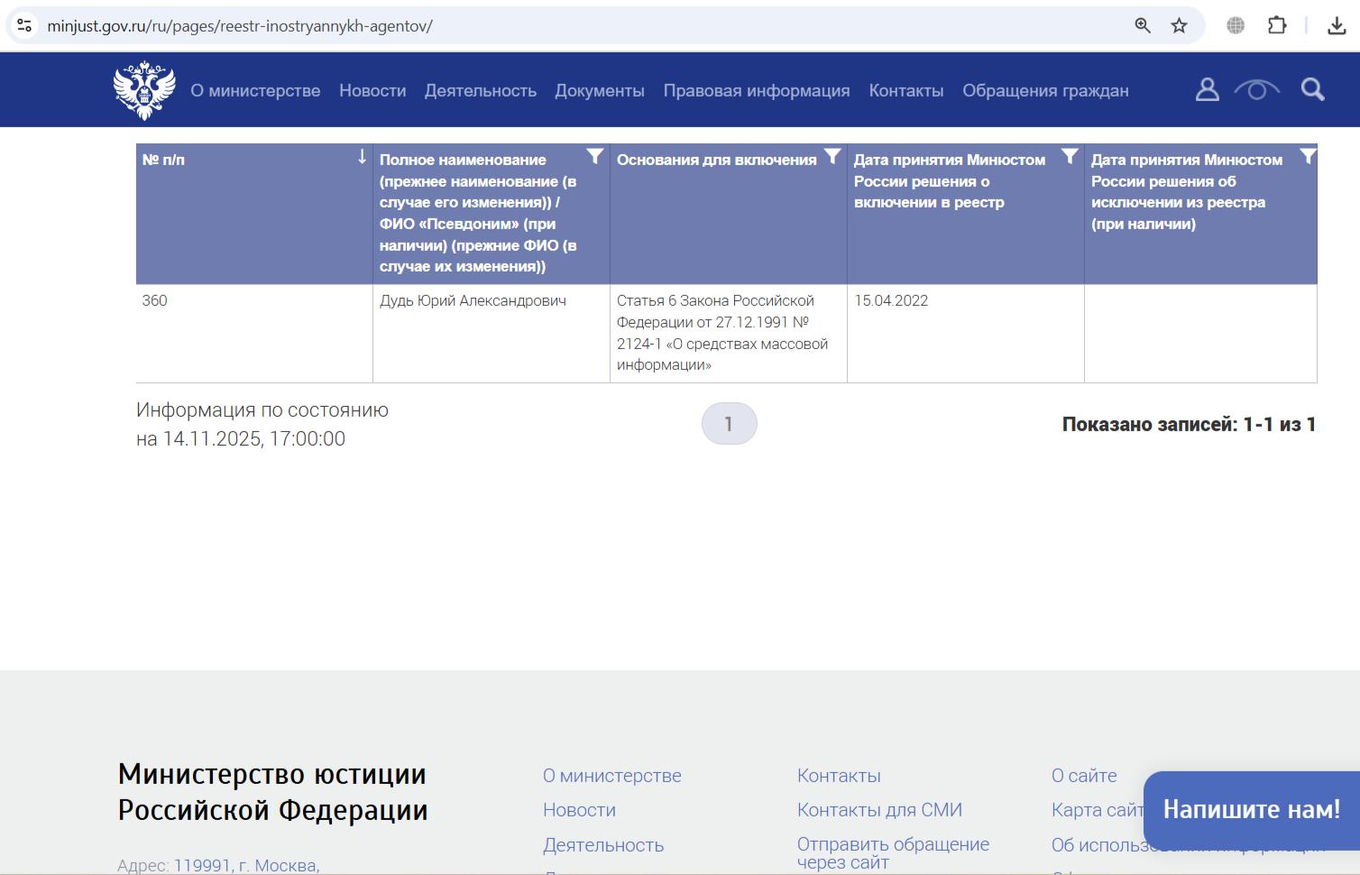 Минюст РФ внес Дудя* в реестр СМИ-иноагентов в апреле 2022 года, его неоднократно штрафовали за нарушение иноагентского законодательства.