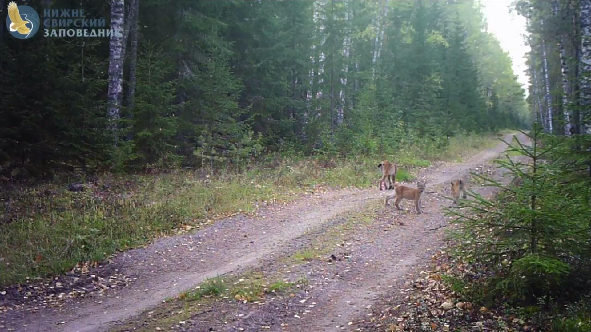 В объективы фотоловушек, установленных на территории Нижне-Свриского заповедника, постоянно попадают лесные жители. В этот раз камера зафиксировала прогулку рыси-мамы с двумя котятами, которые ведут себя, как обычные дети: гуляют, шалят, учатся жизни.