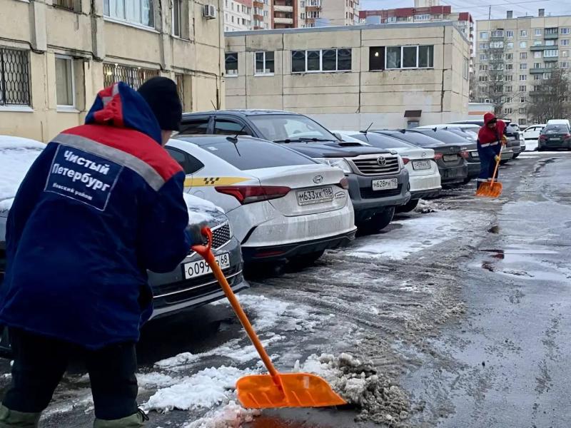После снегопада коммунальные службы Кировского района Петербурга особое внимание уделяют подходам к молодежным клубам.