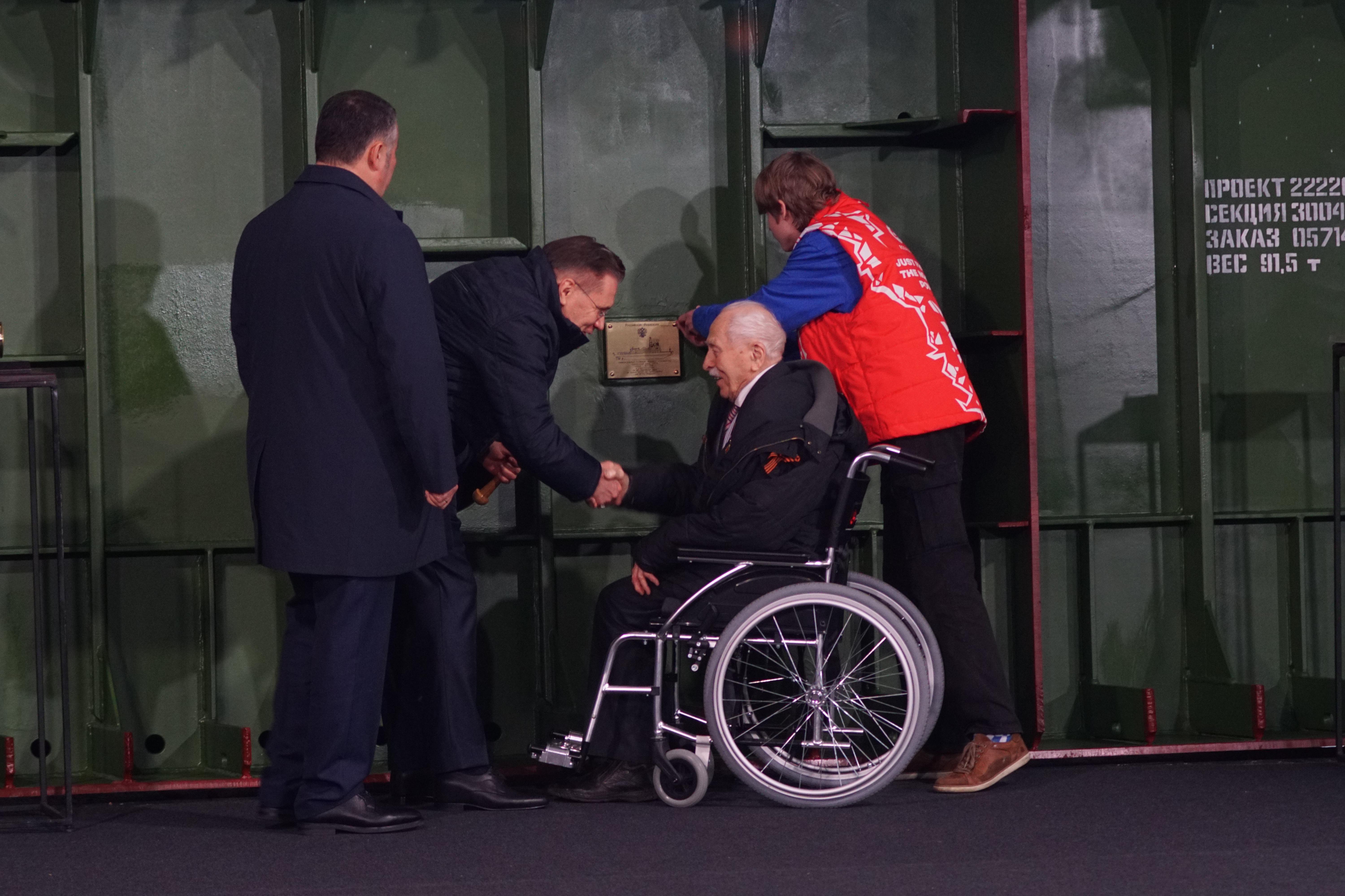 А сегодня одним из почётных гостей торжественной церемонии закладки судна стал участник боев под Сталинградом, 103-летний ветеран Великой Отечественной войны Павел Петрович Винокуров.