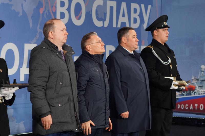 Также старт началу строительства нового атомохода дали полномочный представитель президента в Северо-Западном федеральном округе Игорь Руденя, генеральный директор госкорпорации «Росатом» Алексей Лихачёв и гендиректор ОСК Андрей Пучков.