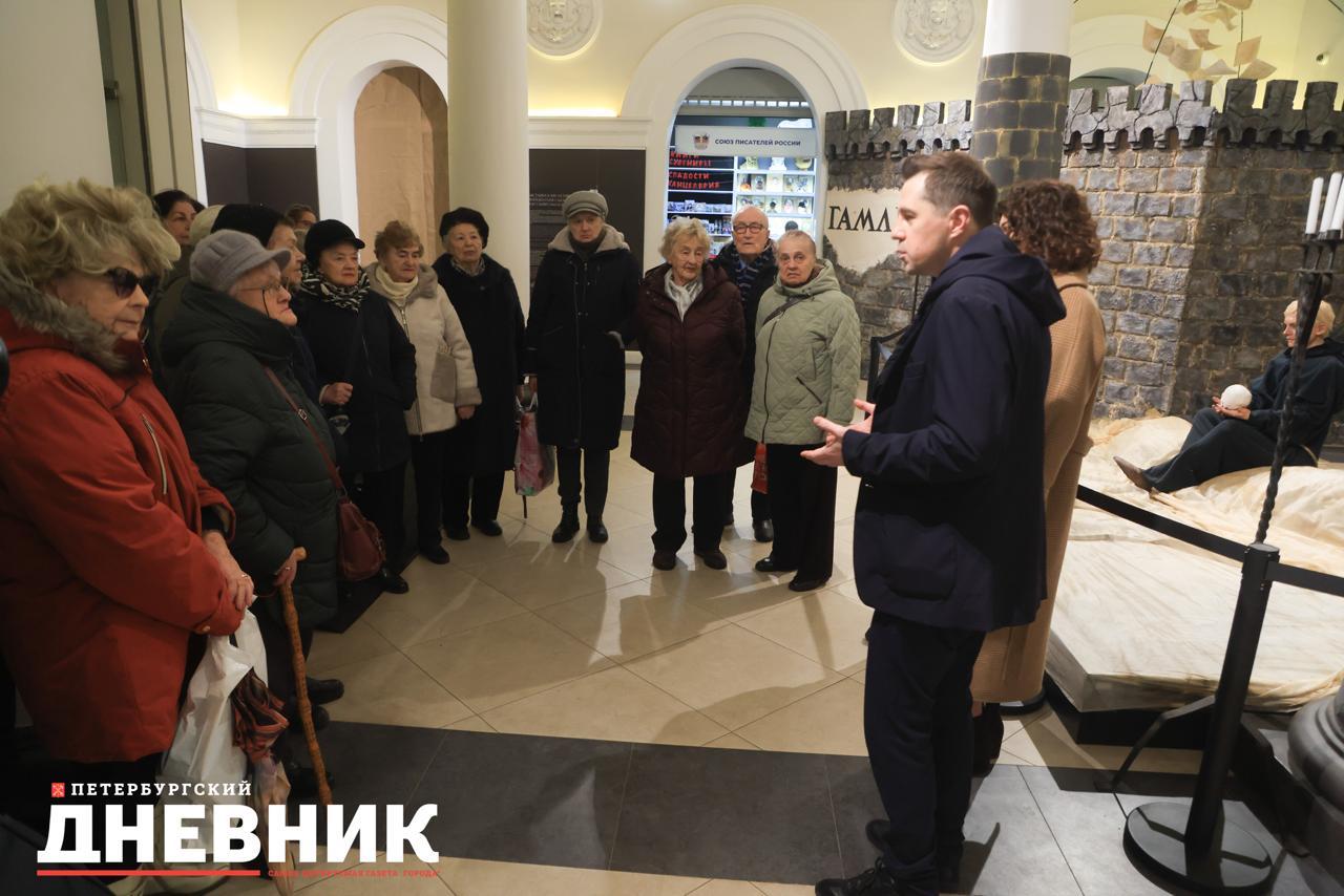 Сначала блокадники осмотрели выставку «Русский Гамлет», посвященную 100-летию одного из самых выдающихся артистов отечественного кинематографа Иннокентия Смоктуновского. Многих удивило, что замок Гамлета был сделан из коробок из-под молока, которые лежали на всех советских прилавках. Также не все знали, что знаменитый монолог «Быть или не быть» снимался на трех морях: Баренцевом, Балтийском и Черном.