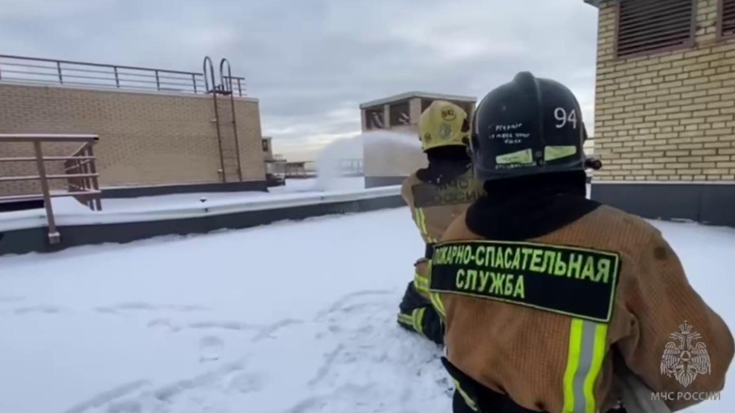 Чтобы быть всегда в готовности к любым пожарам, нужно отработать различные ситуации, отметили в чрезвычайном ведомстве. По всем схемам на кровлю здания спасатели подали водяные стволы.