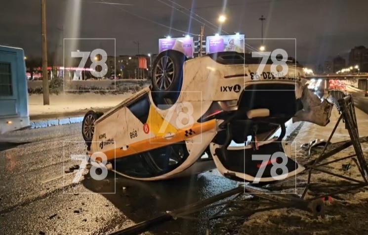 19 ноября в Московском районе произошла авария. Автомобиль такси перевернулся. Фотографией с места происшествия поделился 78.ru.