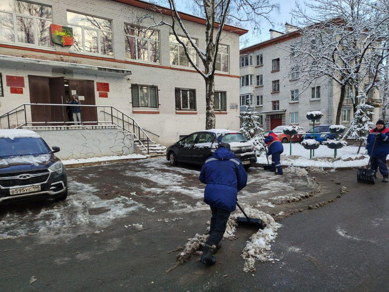 В Красносельском районе, как и в других районах Петербурга, сегодня продолжают убирать снег. В среду коммунальщики чистят после метели дворы и территорию вокруг домов.