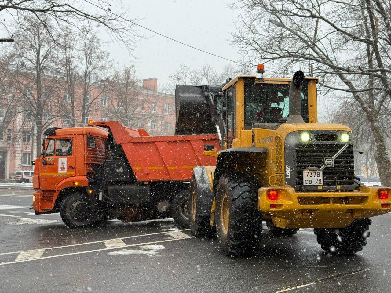 В среду, 19 ноября, петербургские улицы чистят 783 коммунальные машины и 1052 дворника.