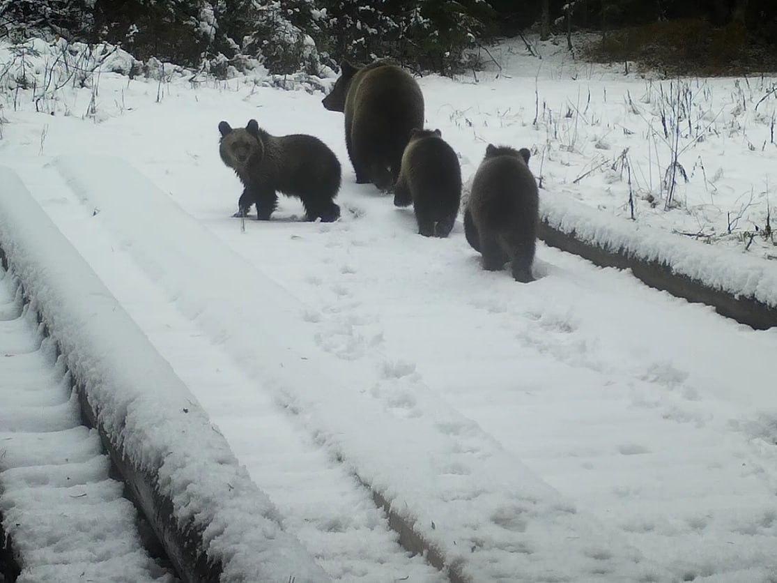 «Хмурое предзимье связано в жизни медведей с окончанием длительной нажировки и дальнейшей подготовкой к зимнему сну. Первые заморозки служат сигналом для молодых медведей и самок приступить к поиску подходящего для берлоги места, в то время как взрослые самцы ещё могут задерживаться у мест кормёжки, уходя на зимовку уже по снегу», – написали сотрудники.