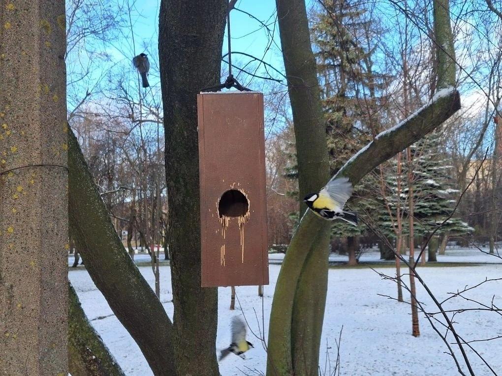 Деревянные синичники стали надежным укрытием от непогоды для птиц, а кормушки регулярно пополняются как заботливыми посетителями, так и сотрудниками садово-парковых предприятий.