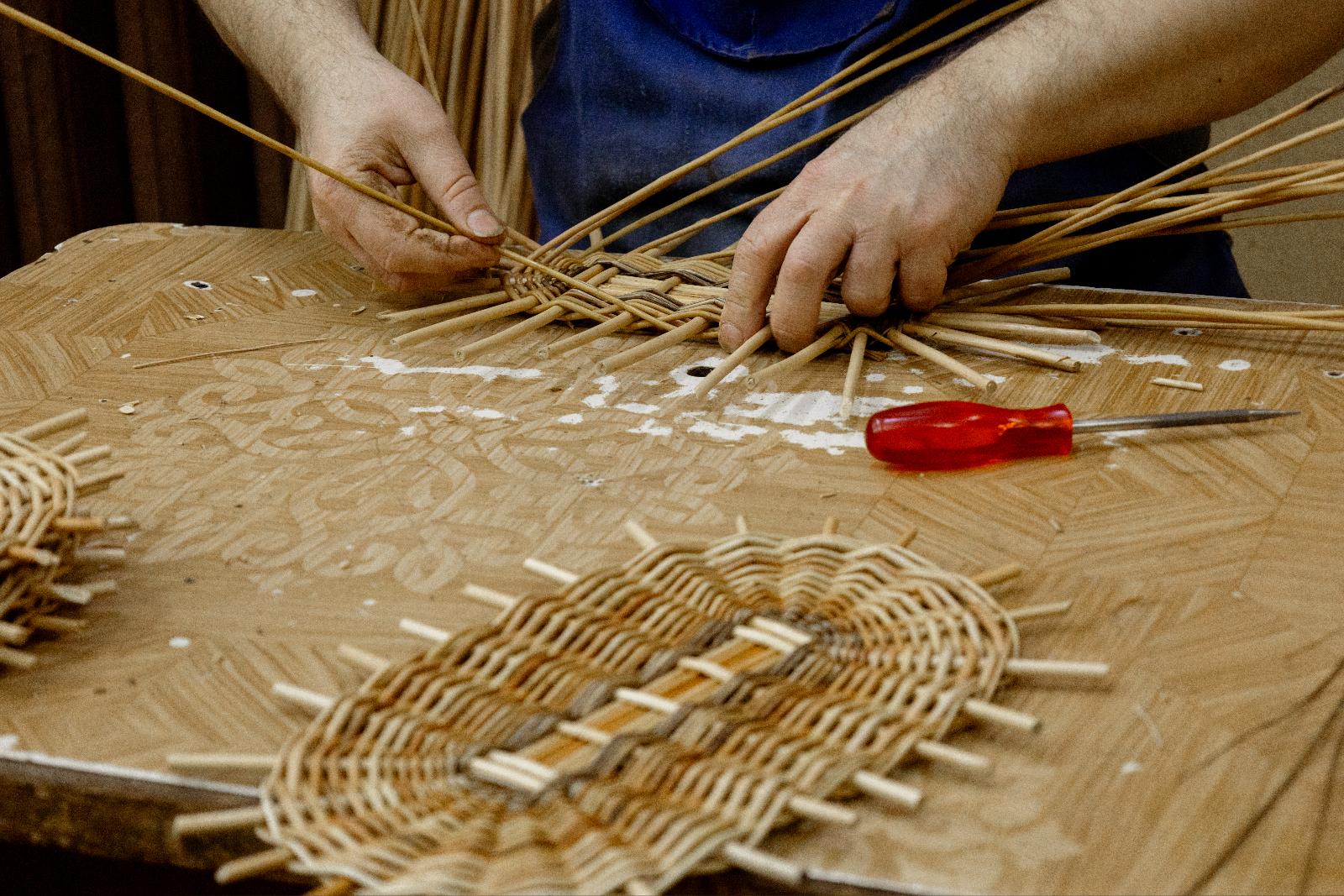 Каждый мастер выполняет определенную работу: готовит прутья, плетет донышки, собирает изделие. В зависимости от его размера и сложности изготовление может занимать от одного до нескольких дней.