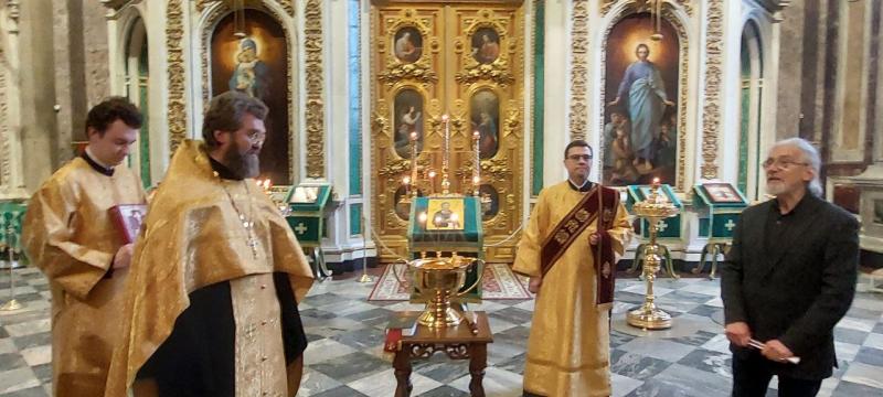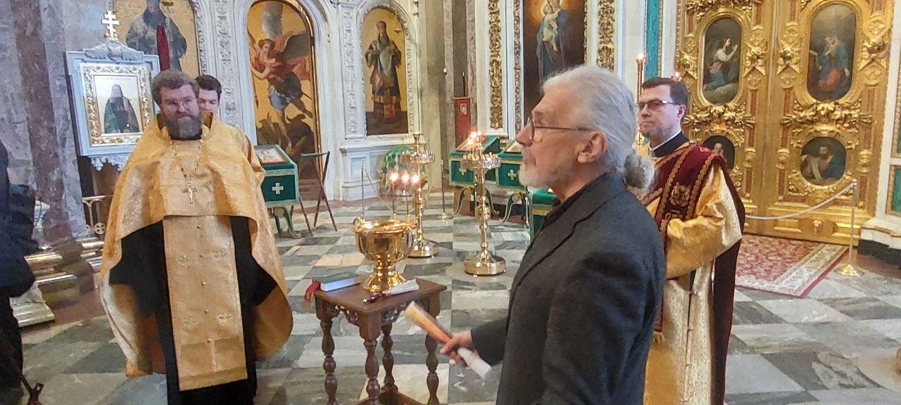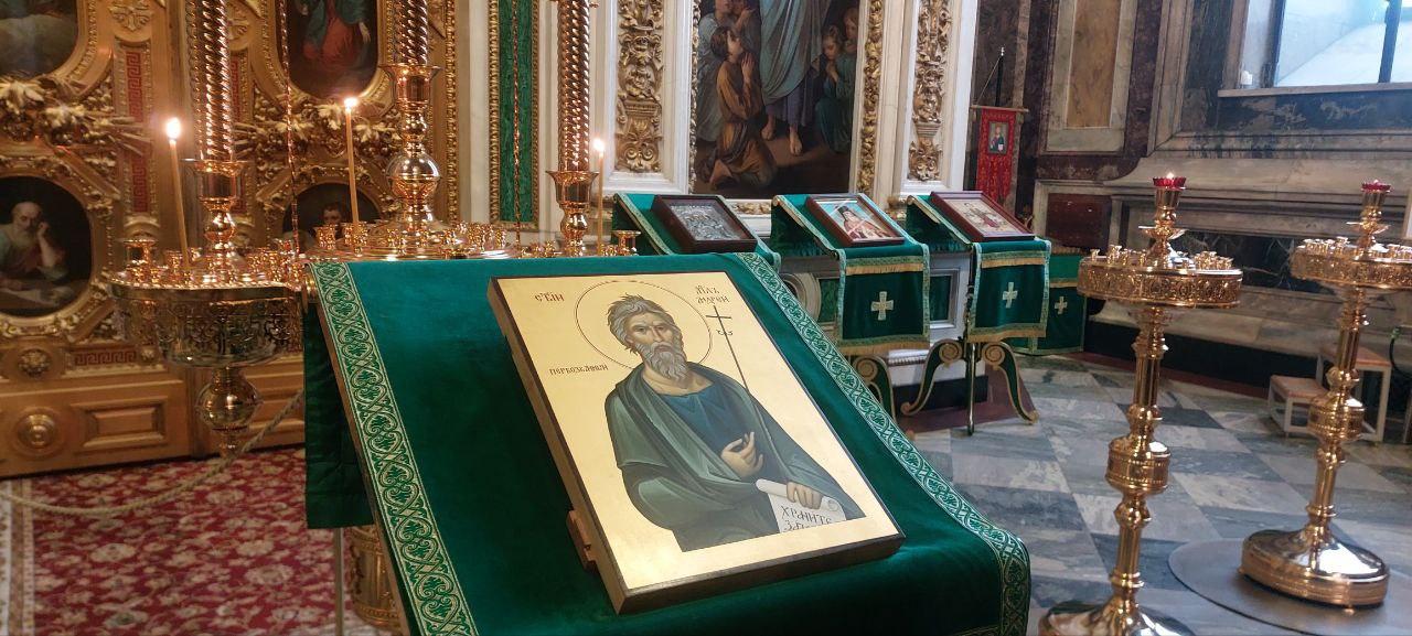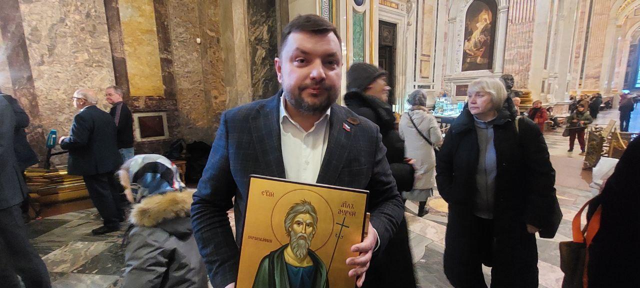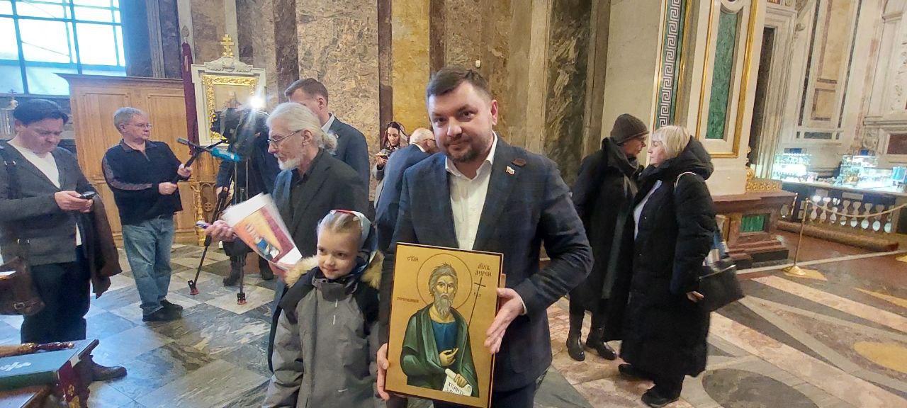 В Исаакиевском соборе торжественно освятили икону святого апостола Андрея Первозванного. Вскоре ее передадут в дар Свято-Никольскому кафедральному собору города-побратима Мариуполя.