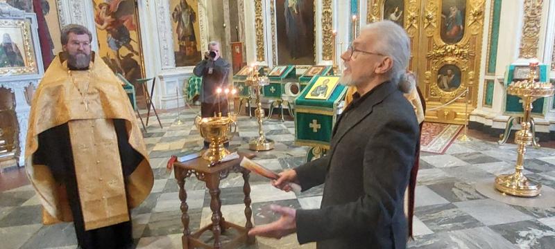 На торжественную церемонию в главном соборе Петербурга собралось несколько десятков человек – депутаты Законодательного собрания, муниципальных советов, активисты городского проекта «Красота жизни – дар Донбассу» и простые прихожане. Она проходила в правом приделе собора, в стороне от глаз обычных посетителей, пришедших в Исаакий с экскурсиями.