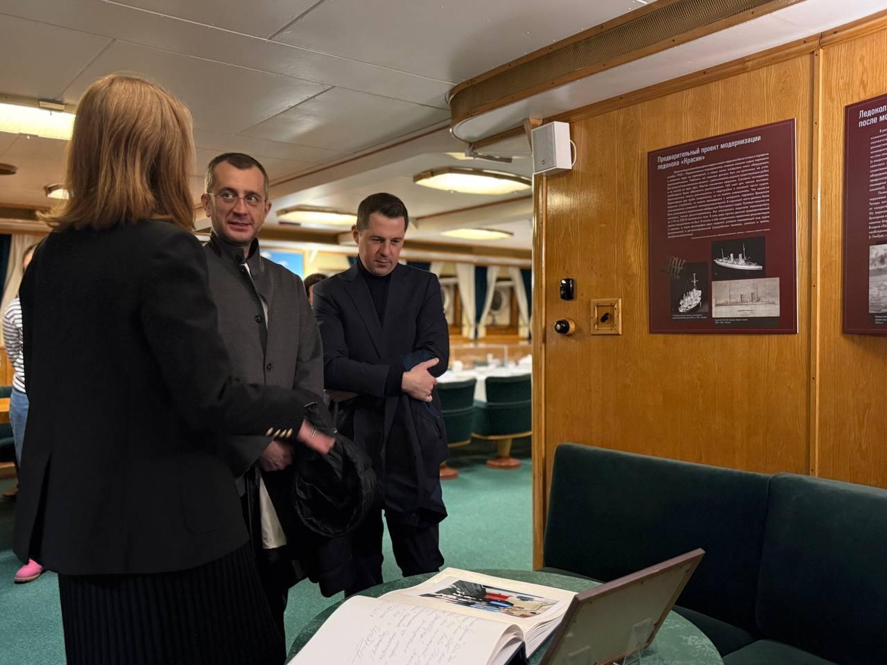 «Кроме тематической экспозиции, на борту продолжает работу основная – посвященная истории судна. Вчера обсудили дальнейшее развитие музея и новые проекты с его директором. Тем более в 2027-м «Красин» отметит юбилей – ледоколу исполнится 110 лет», – отметил Борис Пиотровский.