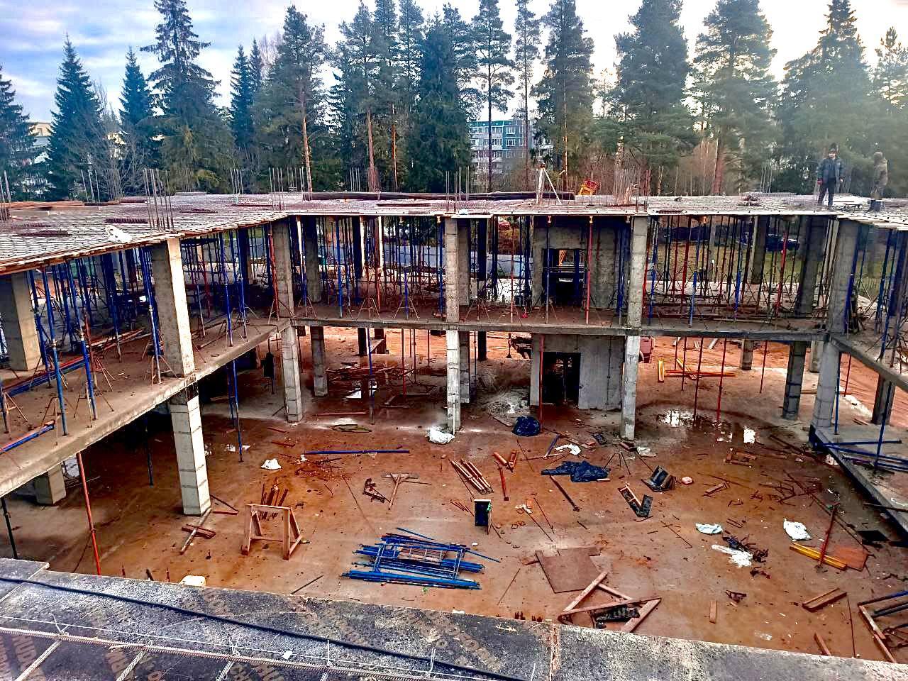 Здание Детской школы искусств в Сосново довели до уровня кровли