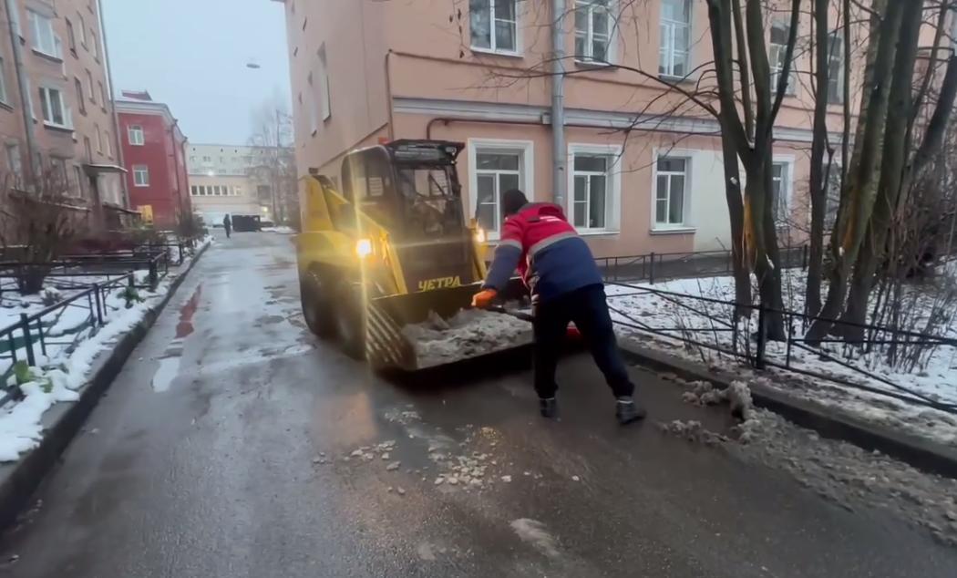 В Кронштадте в ночь на субботу прошел мокрый снег, в городе гололедица, и с раннего утра коммунальные службы занимаются очисткой дорог и тротуаров. Сегодня, 22 ноября в Кронштадте порядок наводят 30 единиц техники и 75 сотрудников ручной уборки, рассказали в пресс-службе администрации района.