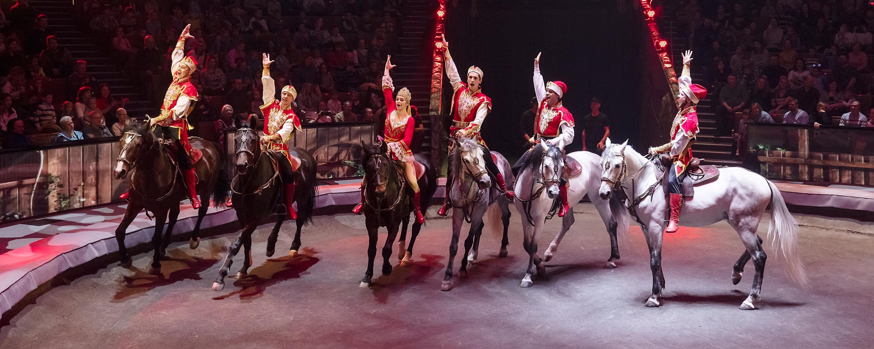 Зрителям предложат номера «Джигиты на лошадях», акробатические блоки на дорожке и на подкидных досках, выступления эквилибристов на першах (серебряные призёры фестиваля «Без Границ» под руководством Сергея Кожевникова), эквилибр Антона Лаврищева на катушках и воздушную гимнастику.
