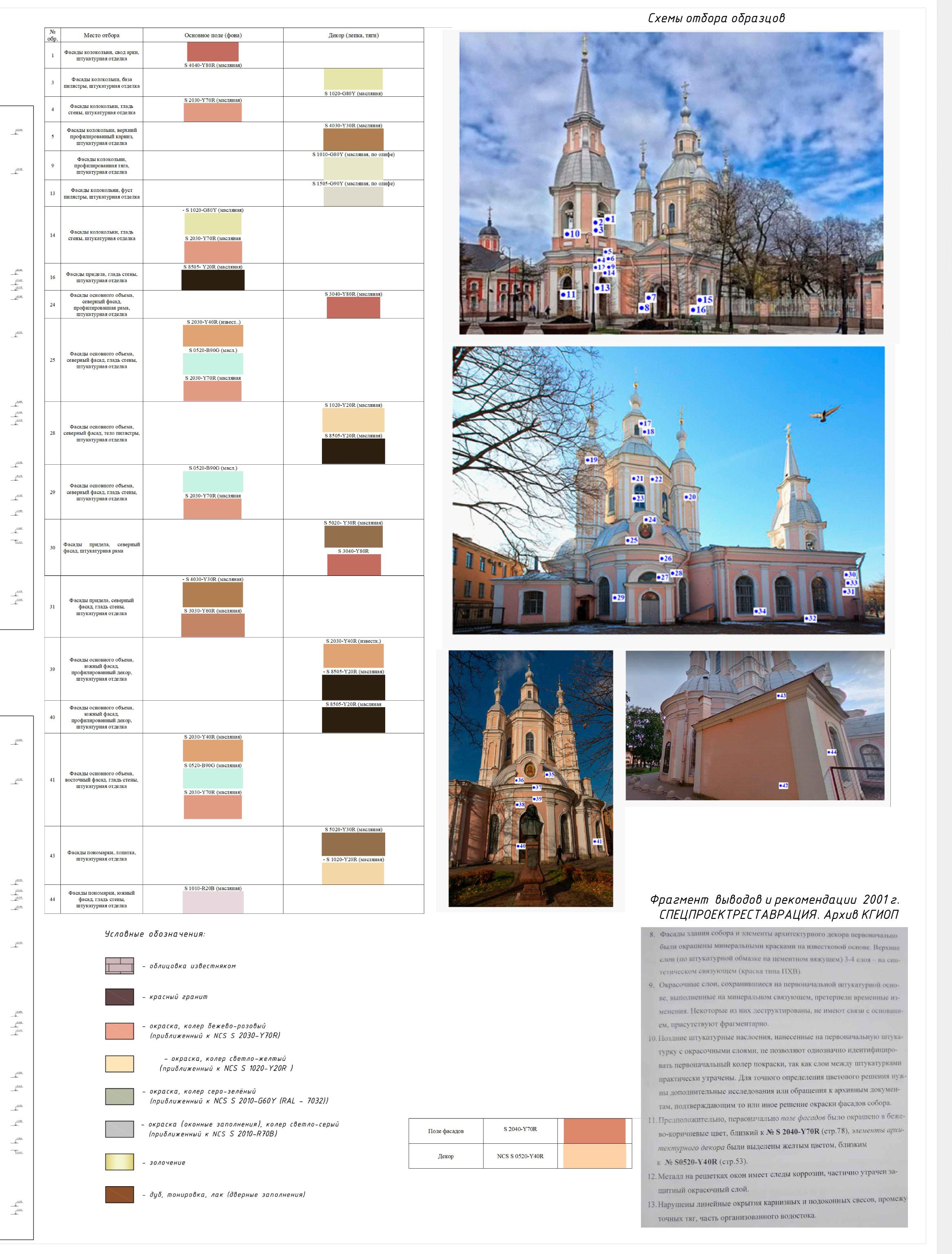 «Мы выполнили забор образцов с фасадов собора. После проведения исследований были зафиксированы два вида краски. Одна, более ранняя по времени нанесения – светло-персиковая, а вторая – розовая. В рамках проектирования мы планируем использовать розовый цвет для дальнейшей окраски фасадов. Такое цветовое решение на объекте встречается в том числе в архитектуре времен Николая Гребенки», – сказала Вера Сопова.