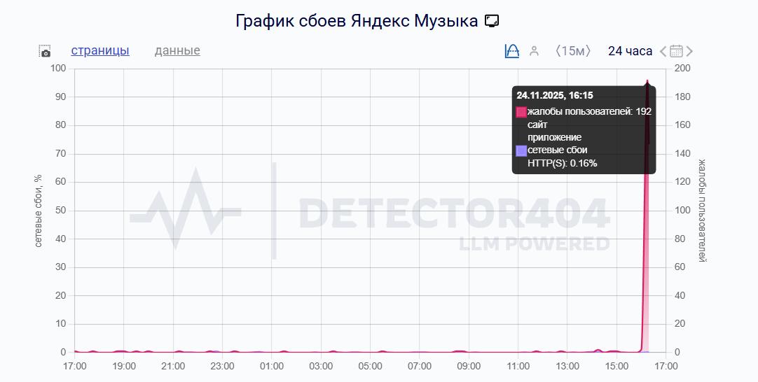 «Сбой.рф» зафиксировали неполадки в работе «Яндекс Музыки». Больше всего жалоб поступило из Алтайского края, Санкт-Петербурга, Нижегородской области и Москвы, уточняет сервис Downdetecor.