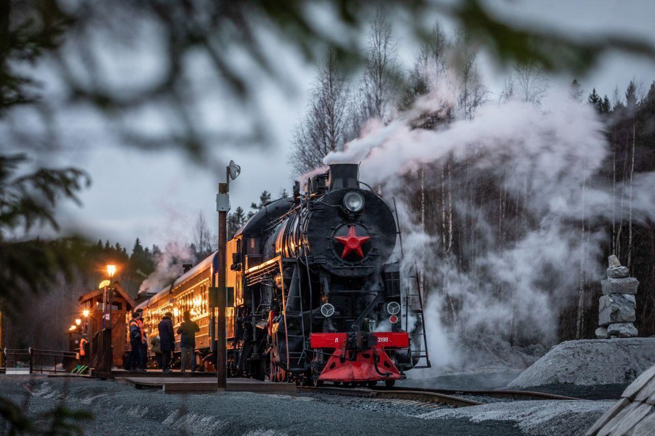 «Рускеальский экспресс» пользуется популярностью. Около 150 тысяч пассажиров перевез ретропоезд в январе-октябре, сообщили в Telegram-канале Октябрьской железной дороги.