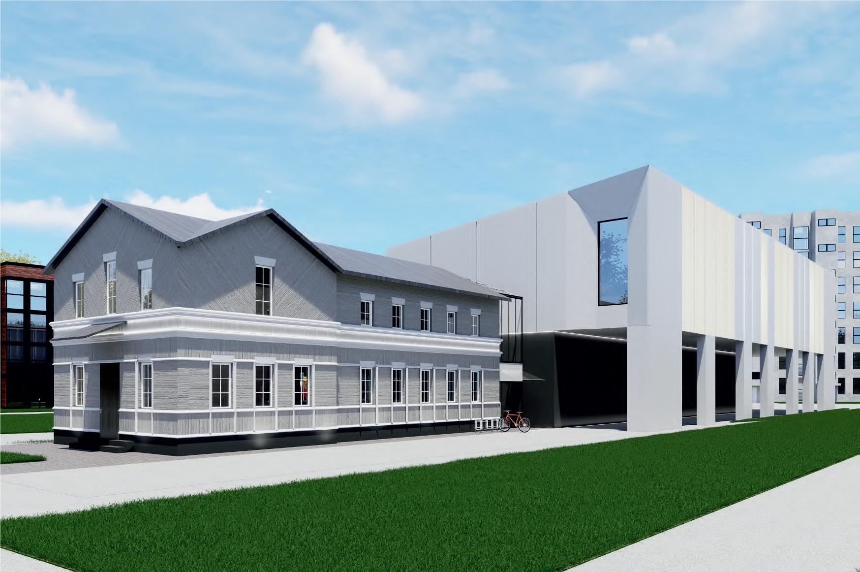 Авторы проекта сделали ставку на гармоничное сочетание старого и нового. Историческая часть выступит в роли «декорации» или «артефакта», сохраняя аутентичность деревянного фасада, современная пристройка выполнит функцию «фона» или «оправы», дополняя ансамбль лаконичным глухим объёмом.