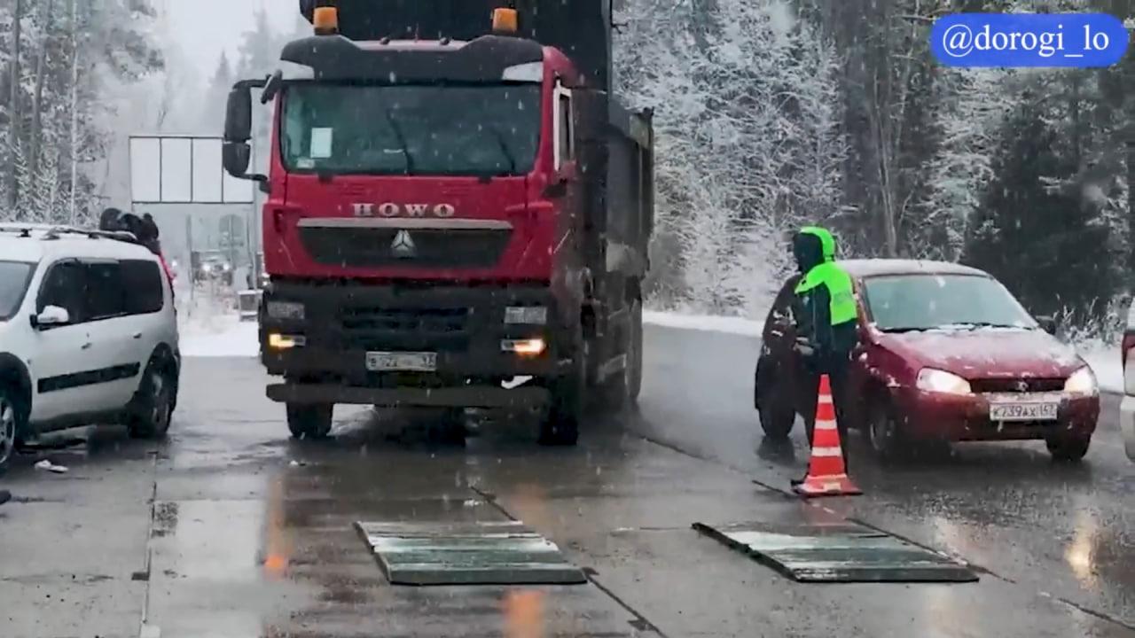 На временном мосту через Лугу задержаны две фуры с перегрузом