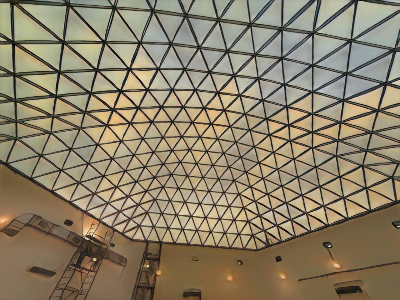 На текущий момент в атриуме завершена отделка стен, смонтировано освещение, установлены инфракрасные обогреватели, подключена система вентиляции.