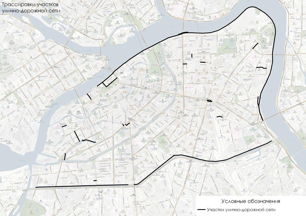 Всего 1154 места для стоянки автомобилей, включая 141 место для бесплатной парковки машин, управляемых людьми с ограниченными возможностями здоровья. Места расположены преимущественно на участках набережных: Дворцовой, Обводного канала и Грибоедова, на некоторых улицах и переулках.