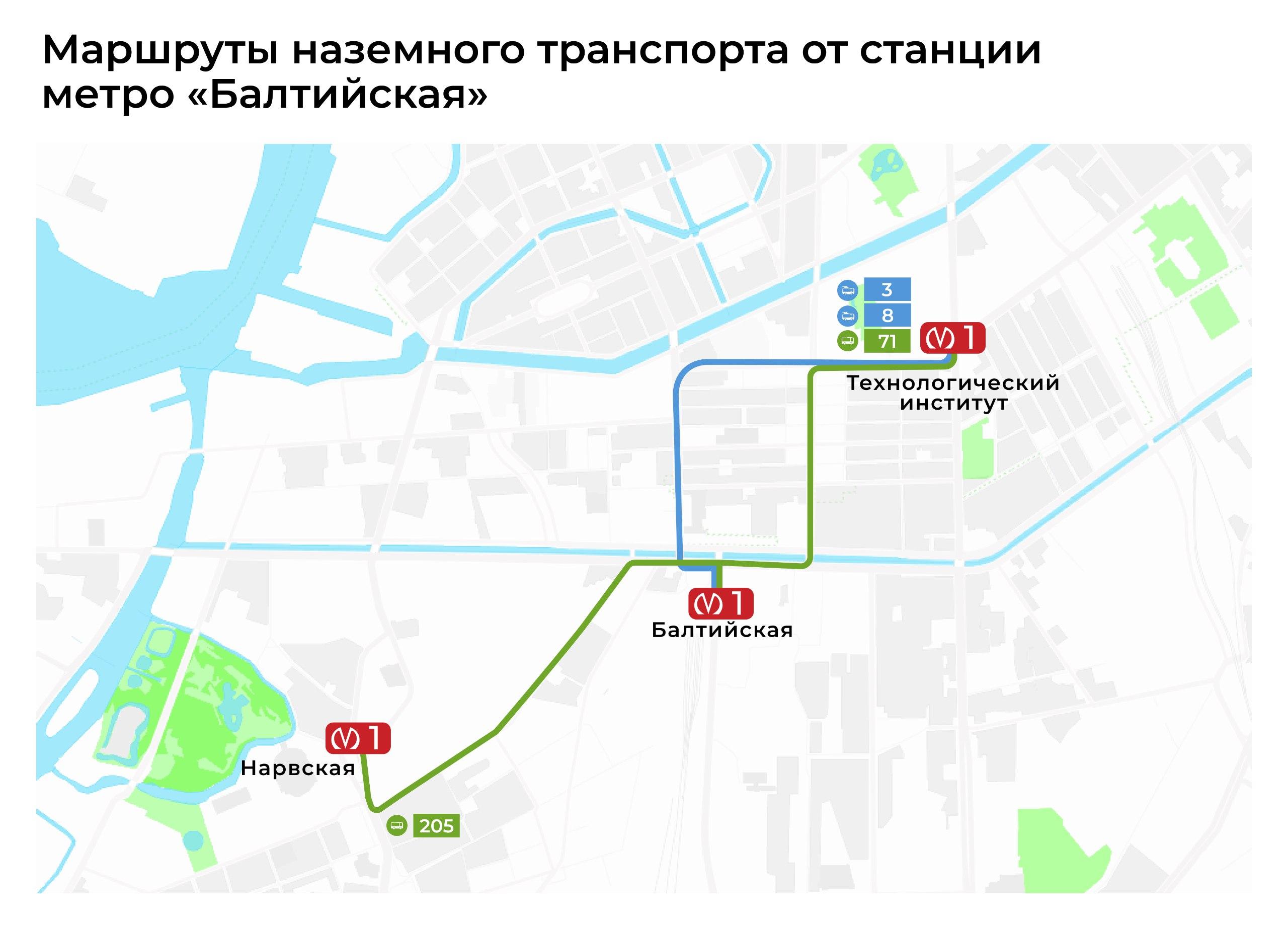 На время ремонта рекомендуется пользоваться соседними станциями метро. До них можно доехать на наземном транспорте. До станции «Технологический институт» ходят автобус № 71, троллейбусы № 3 и № 8, также можно добраться до станции «Нарвская» на автобусе № 205.