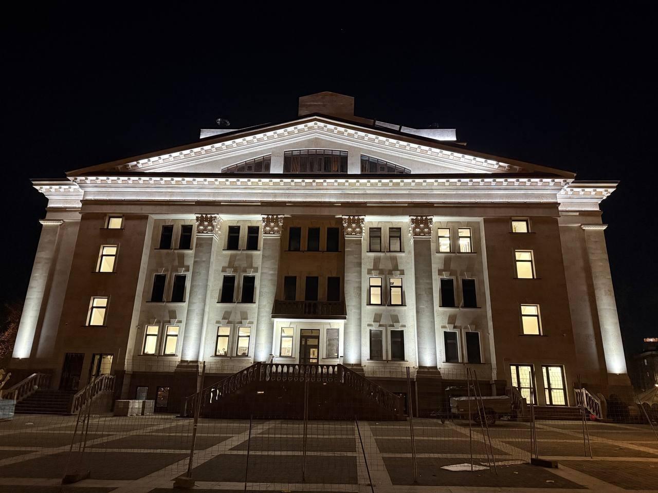 Ранее сообщалось, что специалисты из Санкт‑Петербурга проводят финальную настройку подсветки драмтеатра в Мариуполе.