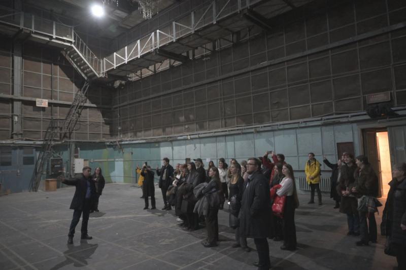 После студенты узнали, почему главный коридор студии называется волчьим. «В советские времена разнорабочих называли волками, то есть теми, кто голоден до работы. После завершения Великой Отечественной войны в город вернулось множество людей, которым нужна была работа. Они приходили в этот коридор в надежде, что из павильона выйдет какой-нибудь художник и предложит подработку, например перенести что-то тяжелое или покрасить какие-то артефакты. В наше время в волчьем коридоре собирается массовка», – пояснил Артемий Аграфенин.