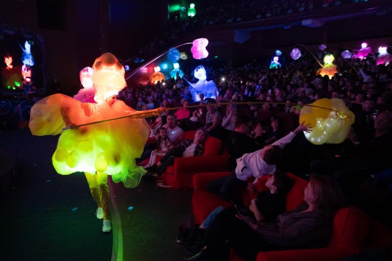 В шоу задействованы более 50 артистов, 30 ростовых кукол мультперсонажей, используются масштабные видео декорации, 3D-мэппинг, технологии лазерного шоу, а также гигантские надувные объекты, которые летают по залу. В постановке заняты молодые артисты петербургских театров. Проект существует уже три года, в разных городах России его увидели 350 тысяч зрителей. В этом году в Северную столицу приедут более 75 самых причудливых костюмов.