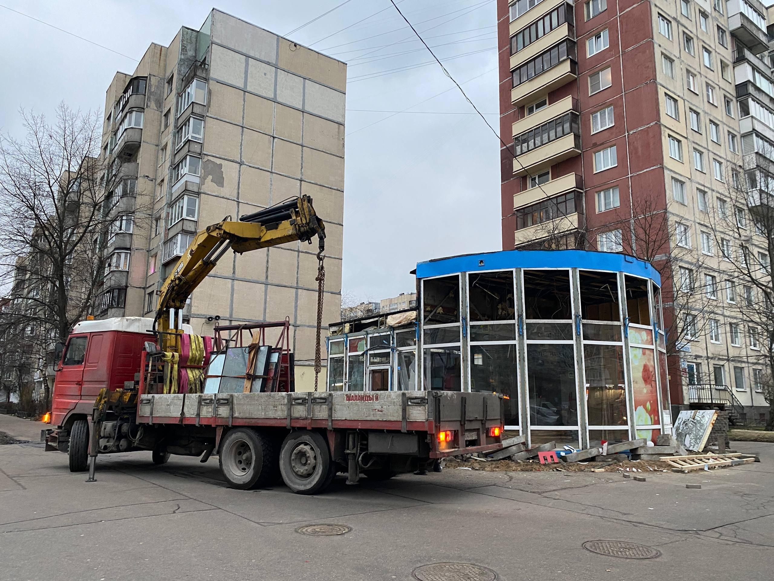 Торговый павильон, расположенный по адресу Наставников, 42, демонтируют. Снос начался после того, как в ноябре истек срок аренды земельного участка.