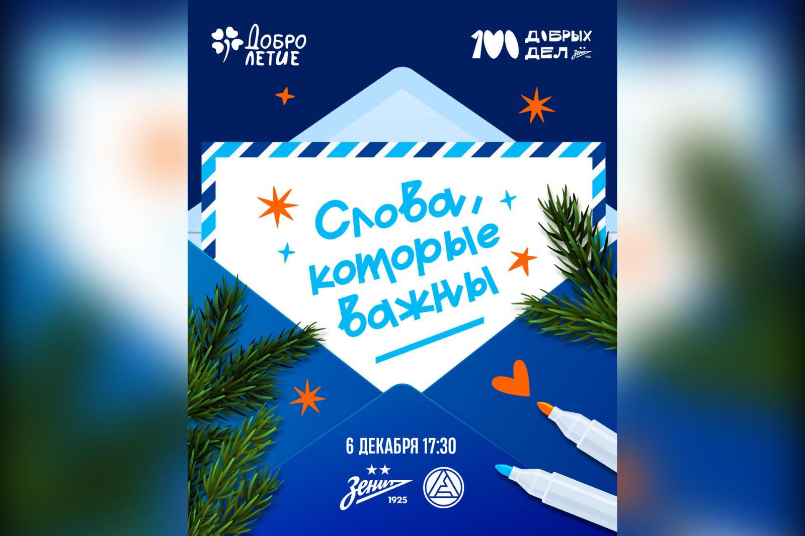В преддверии Нового года на стадионе «Газпром Арена» состоится добрая инициатива – акция в поддержку фонда «Добролетие». Мероприятие станет частью новогоднего «Фан‑Променада» перед заключительным матчем года.
